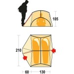 - Конструкцією передбачено два вентиляційних вікна, розташованих з боку входів в намет. З цієї ж сторони розміщені і москітні сітки дверей, що покращує процес вентиляції та знижує ймовірність утворення конденсату. Розташування і конструкція вентиляційних вікон виконані з урахуванням протистояння значним штормовим навантажень
