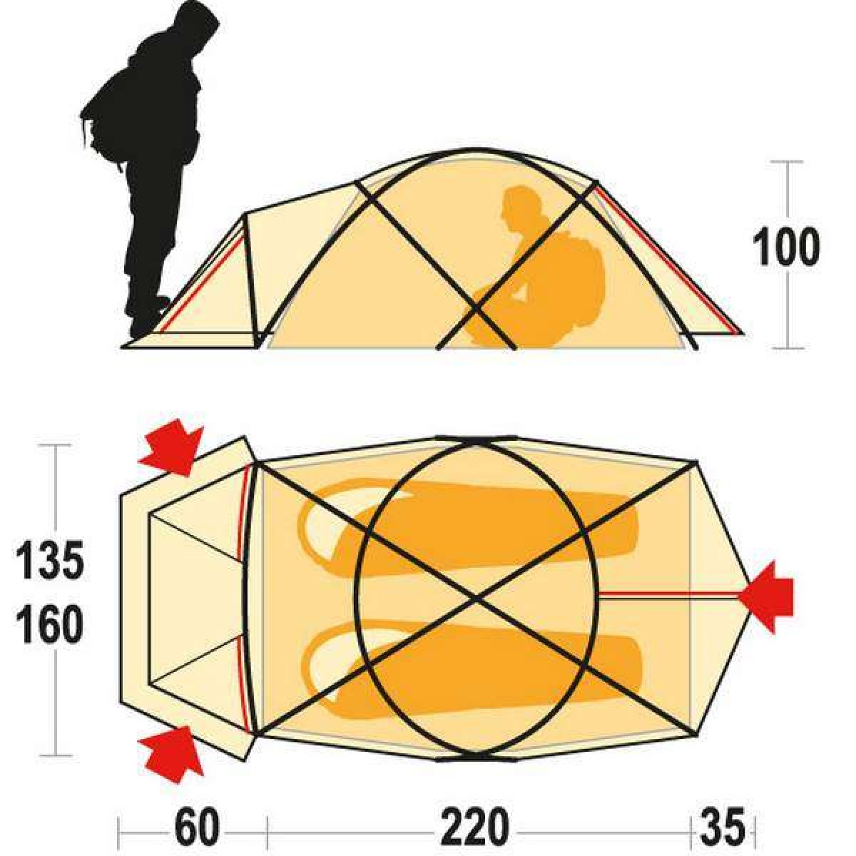 - Внутрішній намет (ДхШхВ), мм: 2200 х 1350 х 1000
