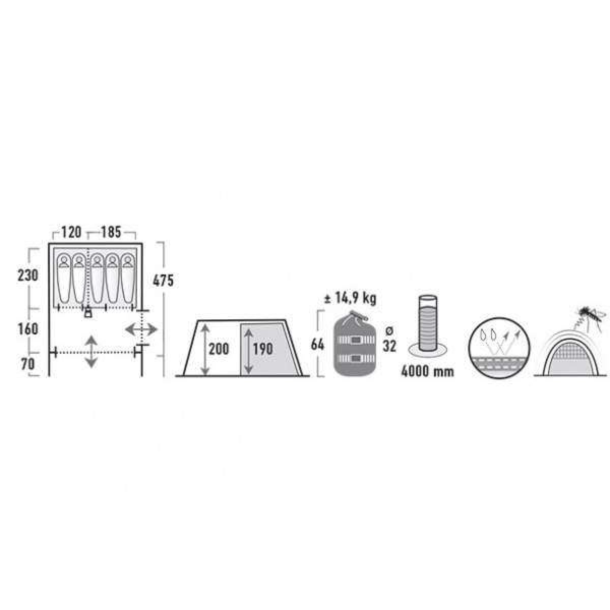 - Вага намету: 14.9 кг