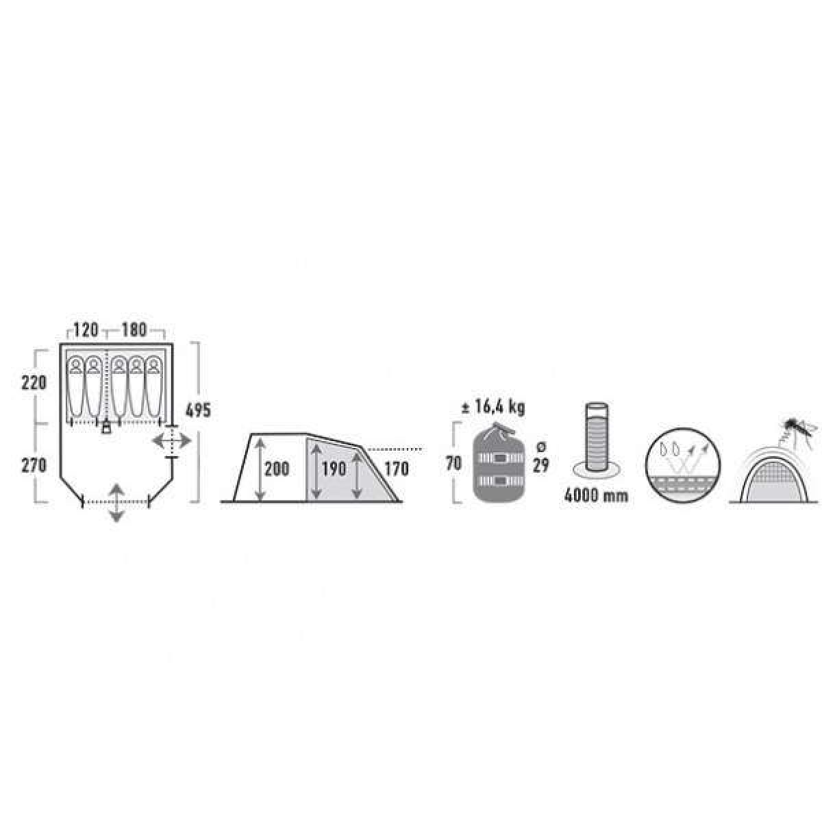 - Габарити зовнішнього намету (ДхШхВ), мм: 4950x3000x2000