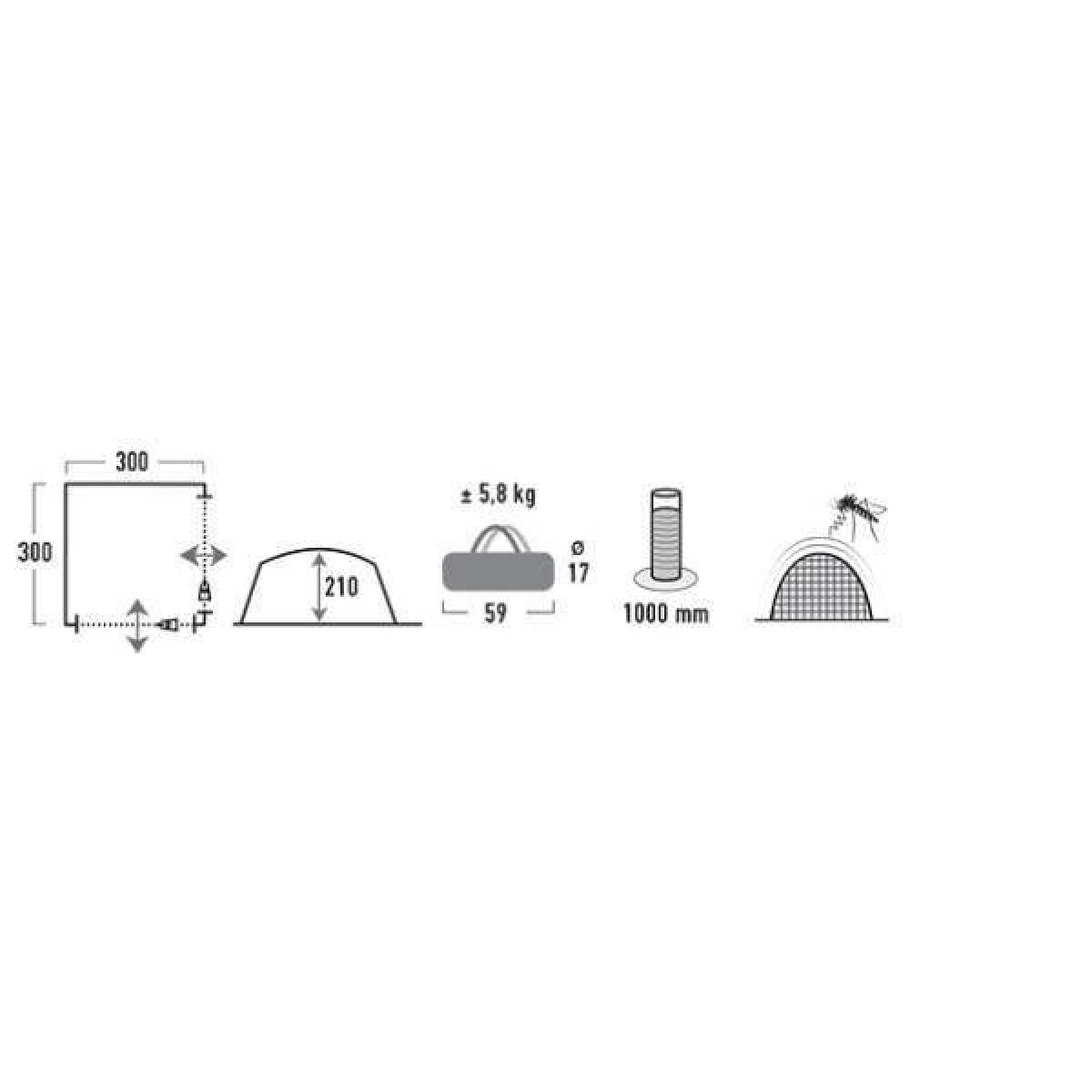 - Каркас: дуги зі скловолокна (fiberglass), 11мм / сталеві опорні стійки, 16мм