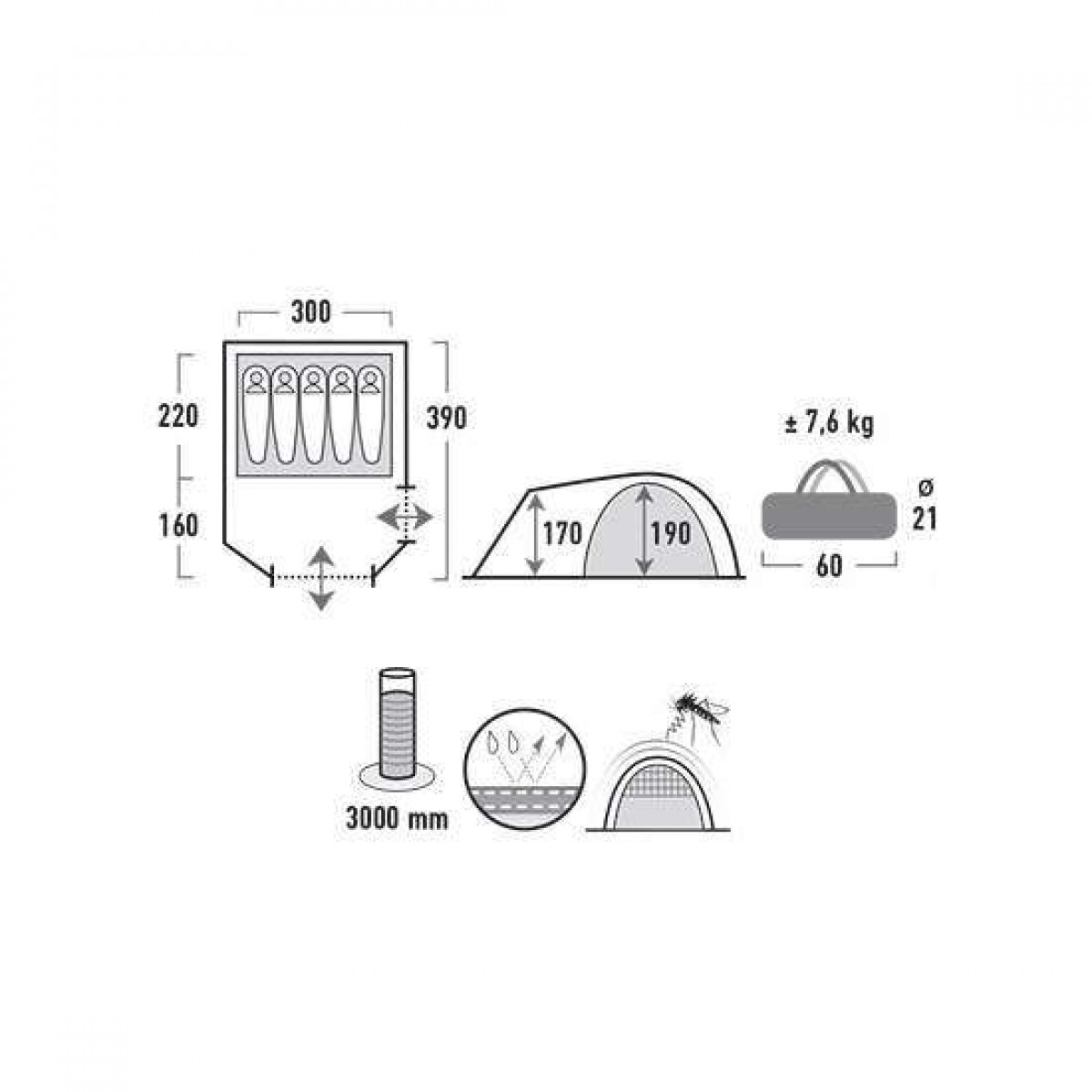 - Вага намету: 7.6 кг