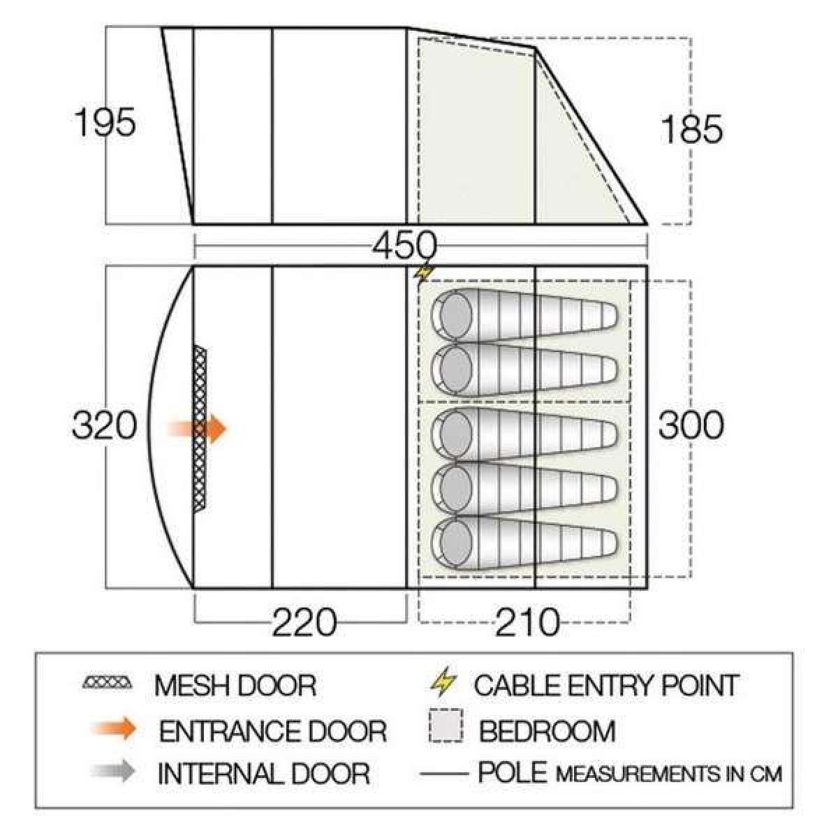 - Матеріал покриття: Protex® 70D (Polyester), 3000 мм ст. ст., проклеєні шви. Розроблений ексклюзивно для Vango.
