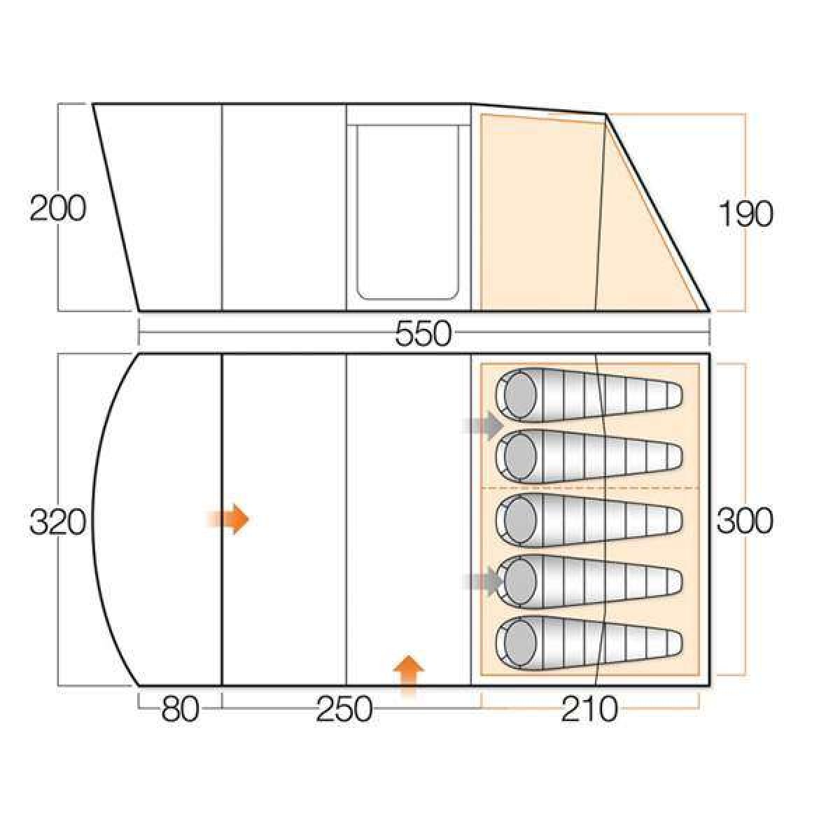 - Зовнішня намет (ДхШхВ), мм: 5500 х 3200 х 2000