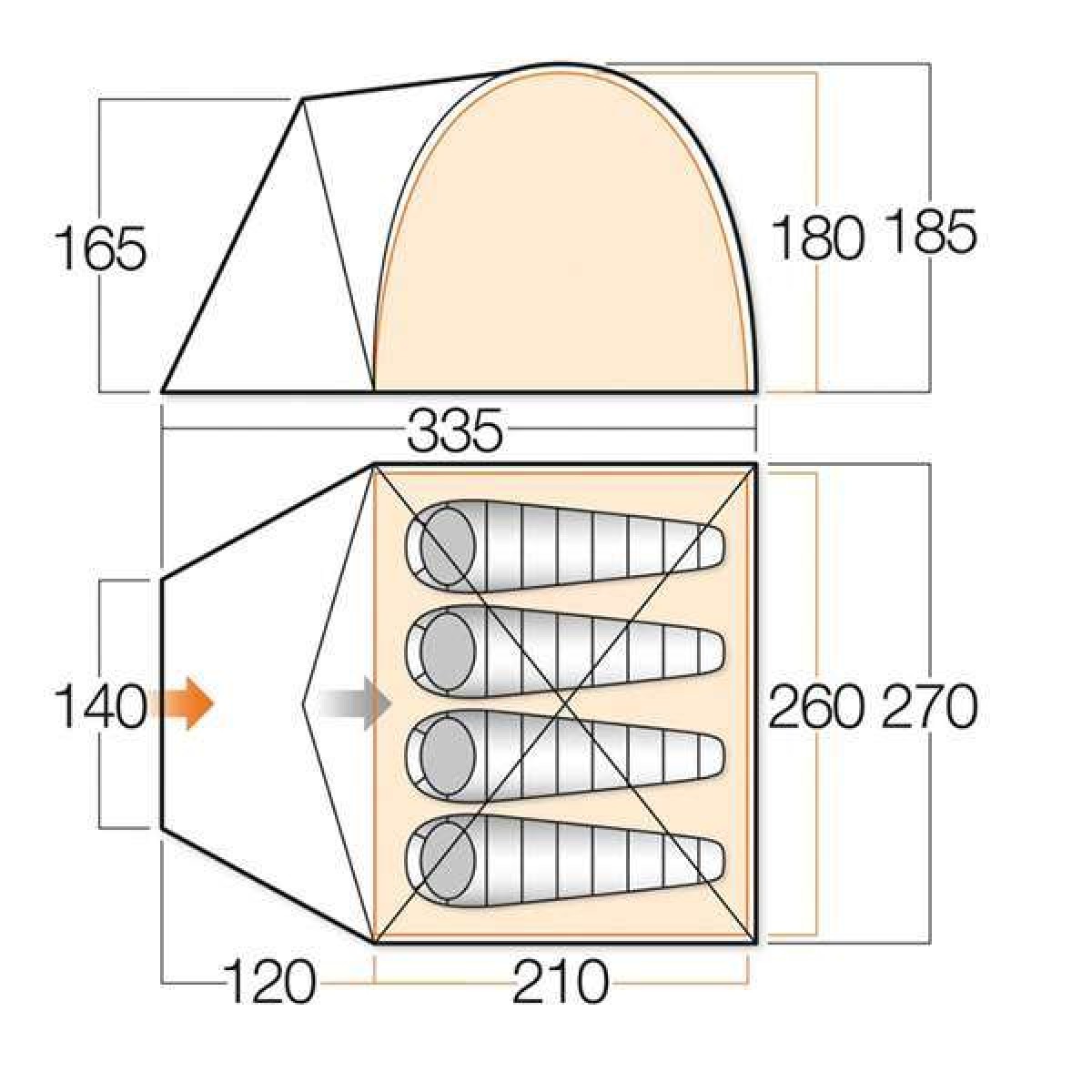 - Матеріал покриття: Protex® 70D (Polyester), 4000 мм ст. ст., проклеєні шви. Розроблений ексклюзивно для Vango.