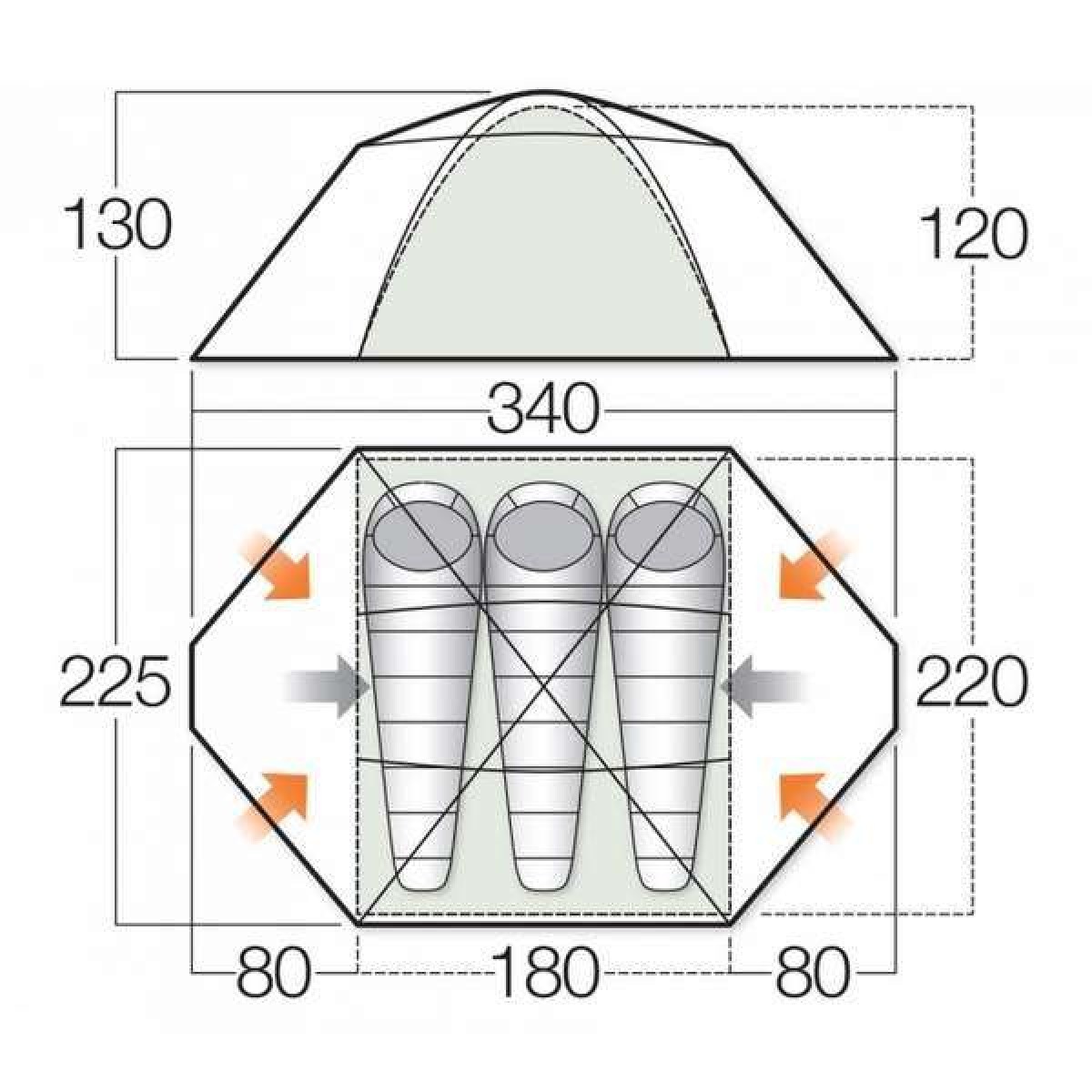 - Матеріал покриття: Protex® 70D (Polyester), 5000 мм ст. ст., проклеєні шви. Розроблений ексклюзивно для Vango.