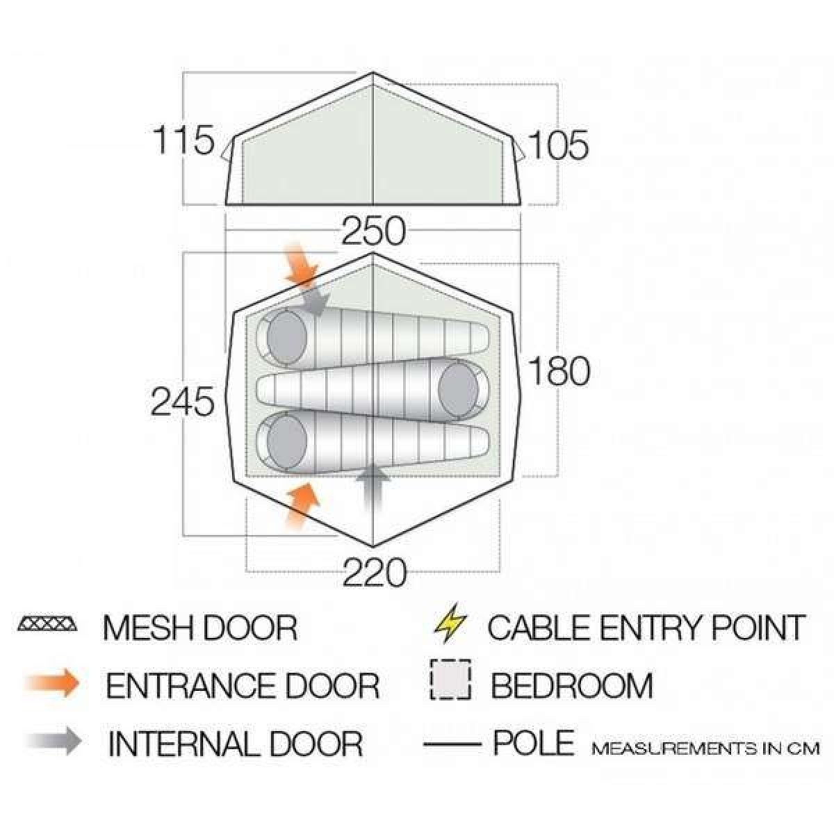 - Внутрішній намет (ДхШхВ), мм: 2200 х 1800 х 1050
