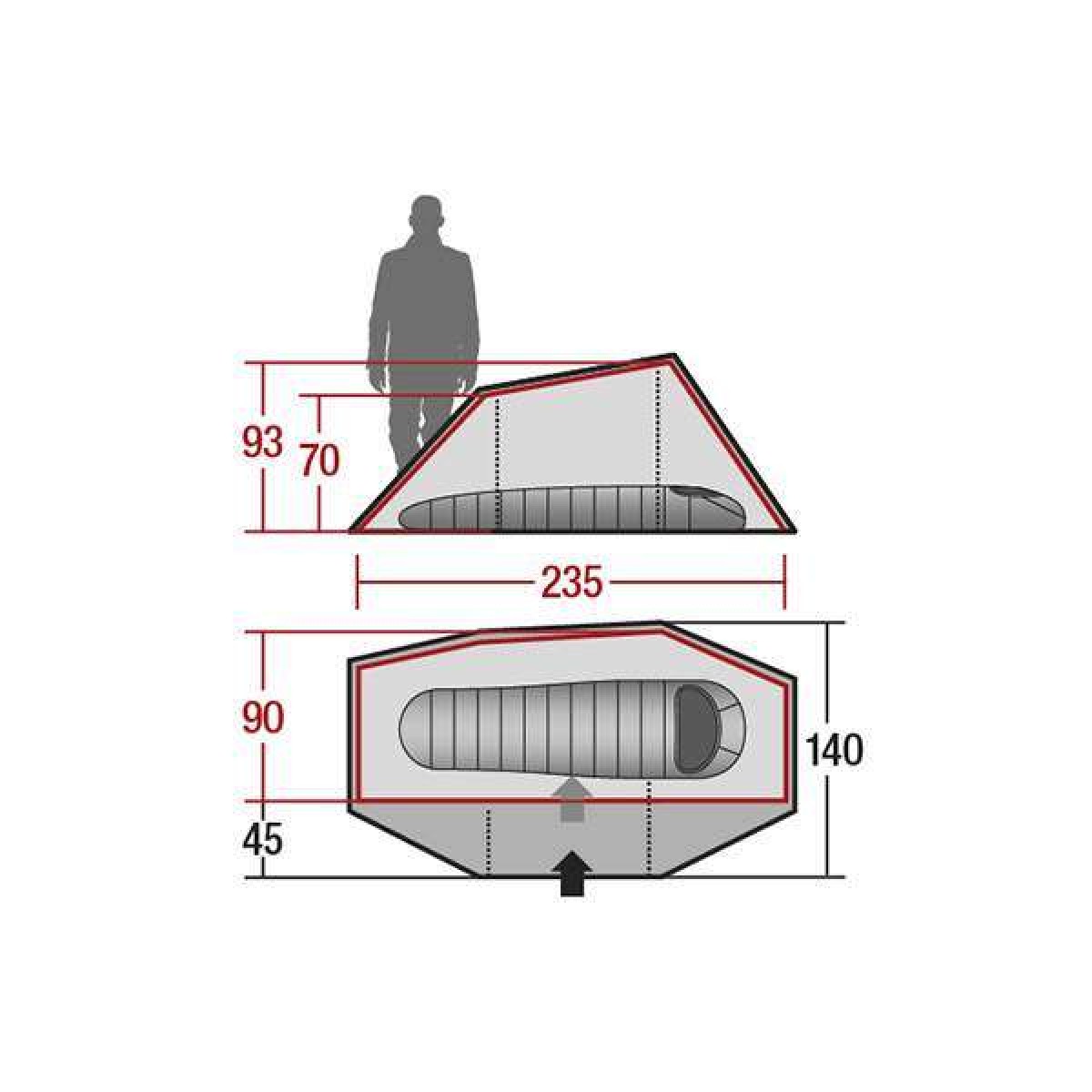 - Внутрішній намет (ДхШхВ), мм: 2350 х 900 х 930