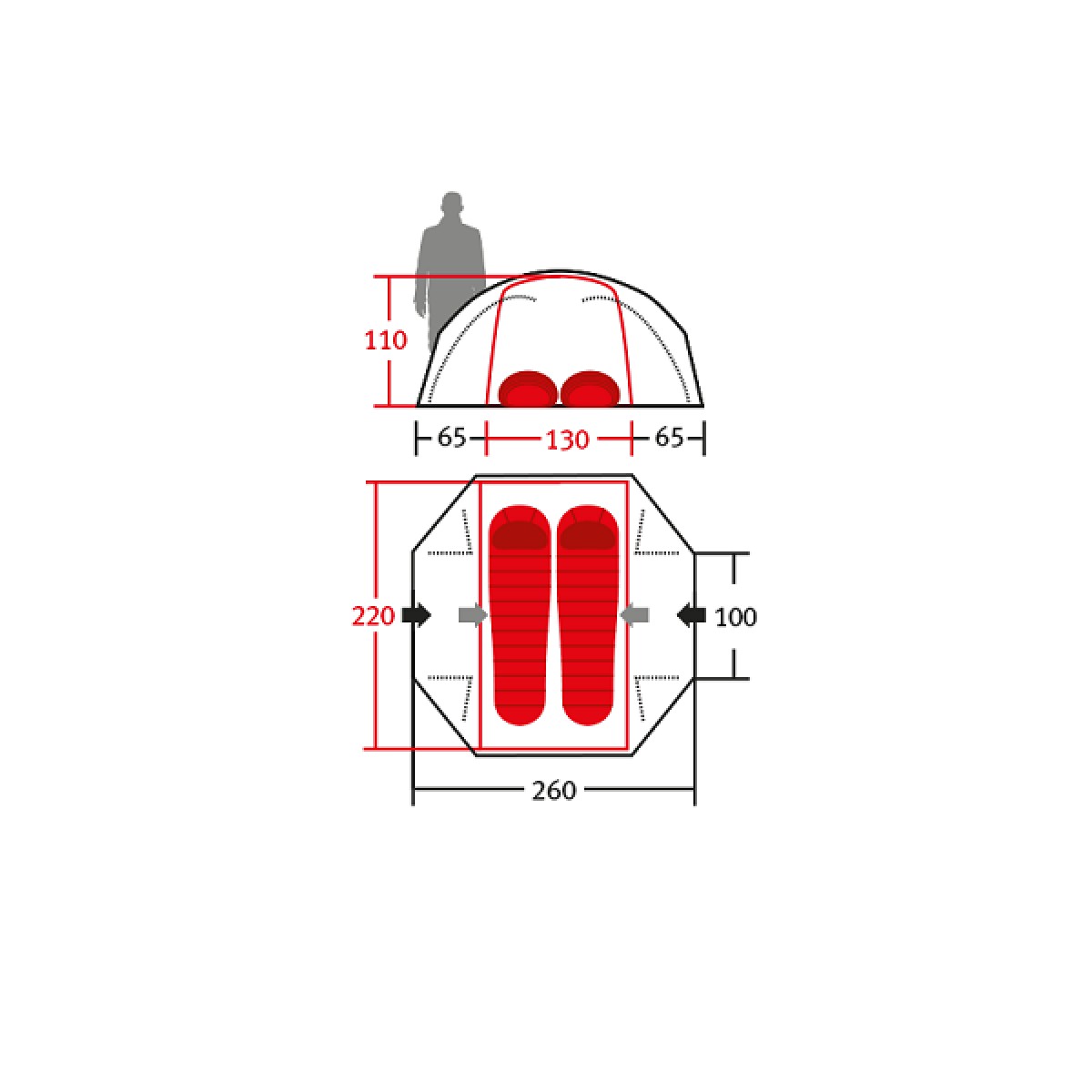 - Внутрішній намет (ДхШхВ), мм: 2350 х 1300 х 1100