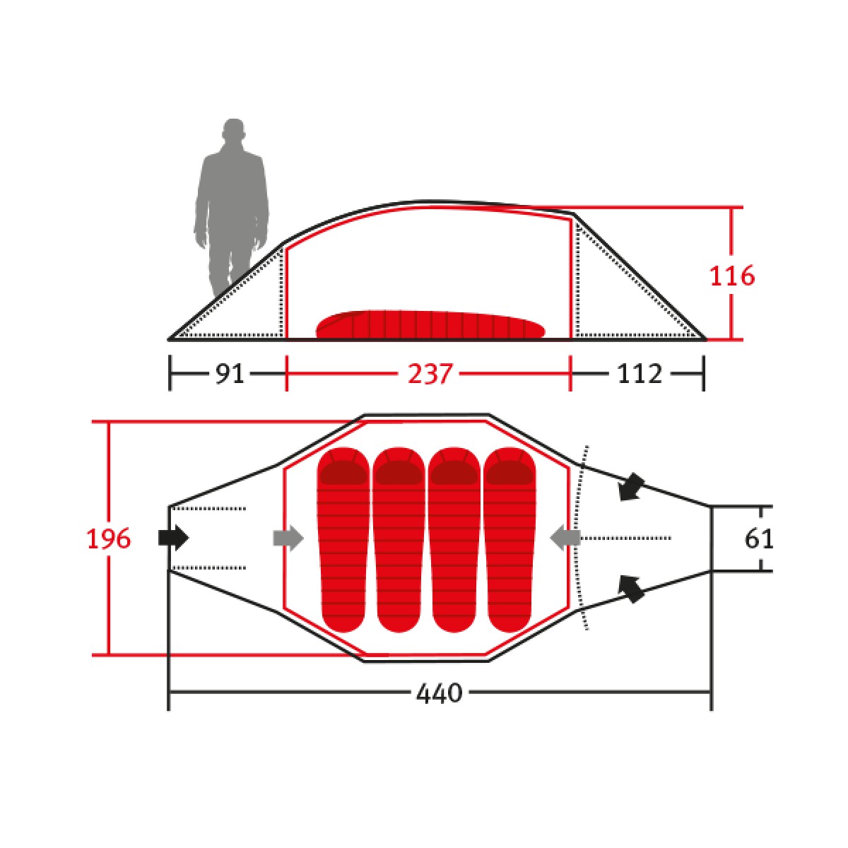 - Внутрішній намет (ДхШхВ), мм: 2370 х 1960 х 1160