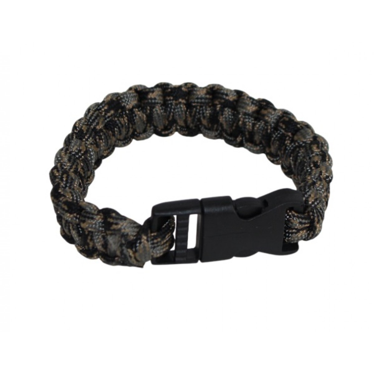 Унікальний браслет з виживання кріпиться пряжкою із міцного ABS пластику. Заплетений машинним способом, PARACORD розроблений компанією US ARMY. Незвичайна стійкість до механічних пошкоджень, невелика вага та вражаюча вантажопідйомність (до 250 кг статичного навантаження) забезпечують максимальну функціональність та якість носіння. розплетений браслет можна використовувати, наприклад, як мотузки для будівництва житла, шнурків або темляка для ножів та інструментів. Ідеально підходить для всіх любителів виживання, ентузіастів аутдора та тих, хто цінує неповторністьОсновні характеристики Браслет з паракорду Камуфляж