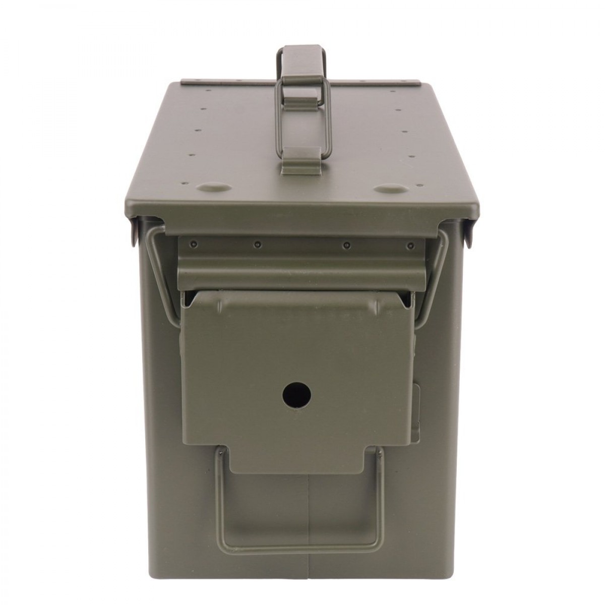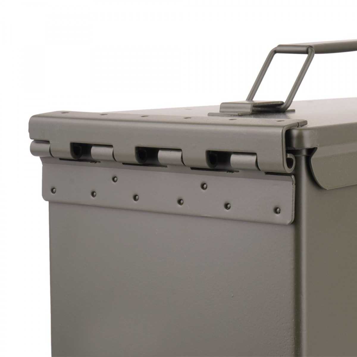 Повністю сталевий ящик для боєприпасів армії США, призначеного для перевезення 100 штук прив'язаних набоїв калібру.50. Завдяки міцній конструкції та герметичному закриттю, він ідеально підходить для зберігання боєприпасів. Він має оригінальне маркування, нанесене на боці, що робить його придатним для історичних реконструкцій.