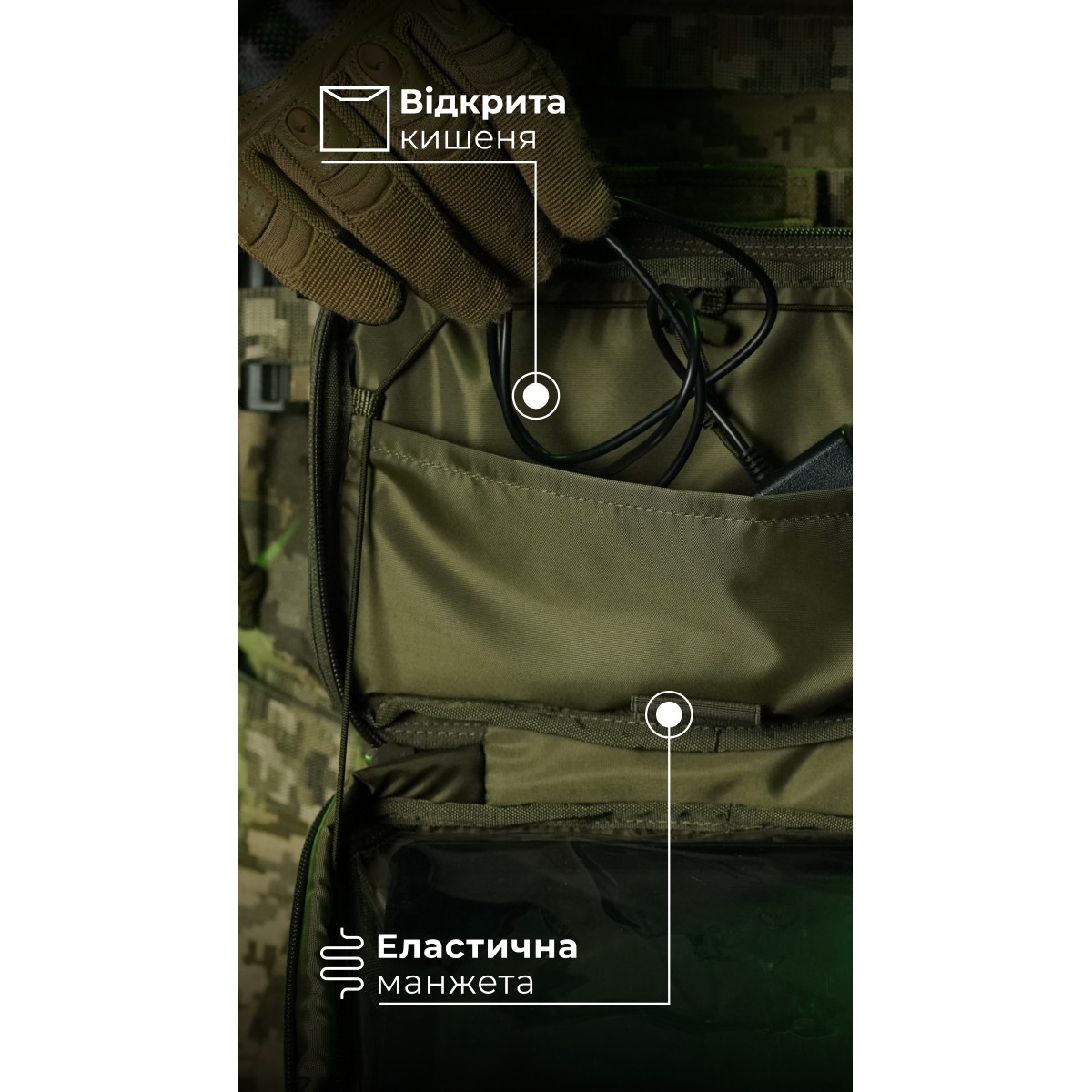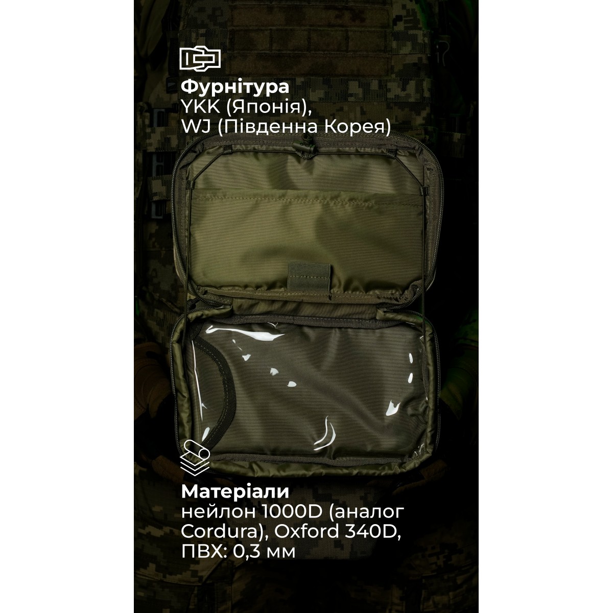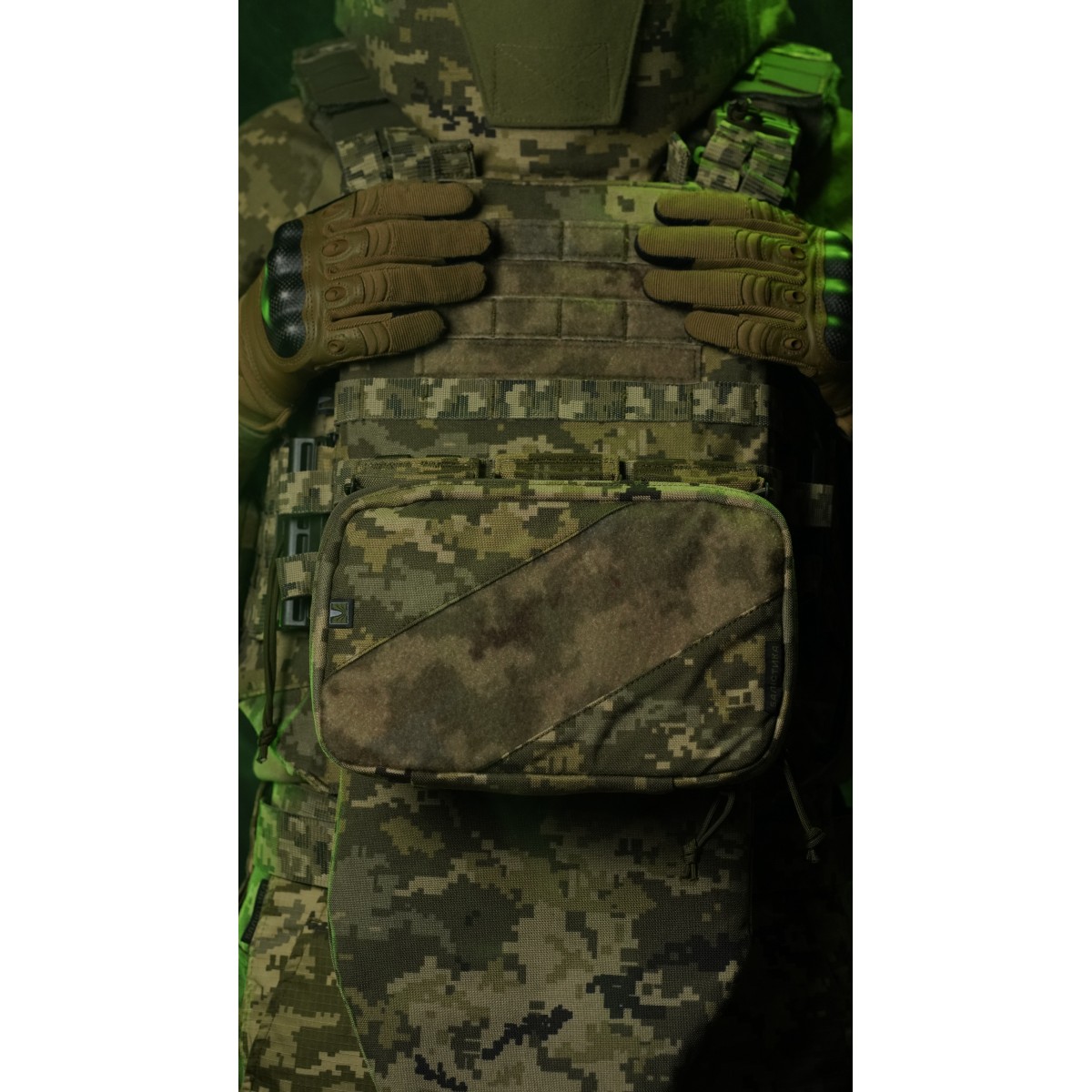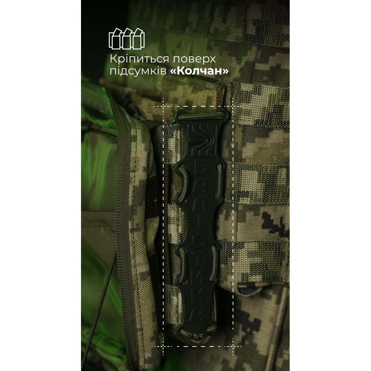 Низькопрофільний підсумок «Берестяник» розрахований на планшет діагоналлю до 8 дюймів. Завдяки демпферним стінкам та ПВХ-плівці надійно захищає ваш пристрій від ударів, бруду, пилу та вологи. ✅ Ключові переваги Призначений для планшета до 8ʺ Прозора кишеня для пристрою Відкрита кишеня для дрібниць Регульований кут розкриття Подвійна еластична манжета під канцелярію Демпферні та пластикові вставки для захисту від пошкоджень Кріпиться на ширину 6 чарунок моллі, зокрема на 3 підсумках «Колчан» Можна носити на ремінці (у комплекті) Зовнішня велкро-панель під патчі та ідентифікатори Опис товару «Берестяник» виконаний у мінімалістичному стилі та має одне відділення. Крім планшета, в ньому також поміститься кілька дрібних речей (необов’язково одночасно) – карта, блокнот формату А5, зарядний пристрій, павербанк, пара енергетичних батончиків тощо. На передній стінці вміщена кишеня з прозорої плівки (23×15 см). Підгорнутий клапан на ній не дає пристрою вислизнути та мінімізує потрапляння всередину бруду. На задній стінці нашита відкрита кишеня з невисоким бортиком (23,5×10,5 см). Зовні на цій кишені розміщена подвійна манжета з еластичної тасьми, у яку можна вкласти ручку, маркер чи олівець. Підсумок застібається блискавкою з двома бігунками та має широке розкриття до дна. ✔️ Тримач з мінікорду та фіксатор дають змогу регулювати кут розкриття. ✔️ Завдяки цьому при розміщенні підсумка на передній панелі плитоноски чи бронежилета він виступає робочою платформою і звільняє руки. Стінки підсумка оснащені демпферами та пластиковими вставками. У боковинах та дні також зашита пінка. Підсумок шнурується до плитоноски чотирма стропами та займає ширину шести чарунок моллі. Оптимально закріпити його зверху на трьох підсумках «Колчан». За потреби його можна носити на ремінці (110×2,5 см) через плече. ✔️ Ремінець постачається разом з підсумком та кріпиться карабінами до крайніх верхніх чарунок моллі чи вертикальних строп. ✔️ Фастекс на ньому забезпечує швидке зняття, а двощілинна рамка – регулювання під статуру. Спереду передбачена фірмова коса велкро-панель (~27×8 см), на яку можна кріпити патчі та ідентифікатори. ❓ Часті запитання Чи не заважає тентове вікно роботі з сенсорним екраном? Ні, воно повністю передає натискання. Тому ви можете працювати з планшетом, навіть не виймаючи його з кишені. Чи поміститься планшет на 10 дюймів? Підсумок створений під планшети до 8 дюймів. Чи можна прати підсумок з ПВХ-плівкою? Рекомендуємо лише ручне прання з безфосфатним порошком у воді кімнатної температури. Не застосовуйте надмірної сили та жорстких щіток під час очищення плівки.Відгуки про Підсумок для планшету "Берестяник" (До 8" | З тентовим вікном | ММ14 "Піксель") ТМ Балістика