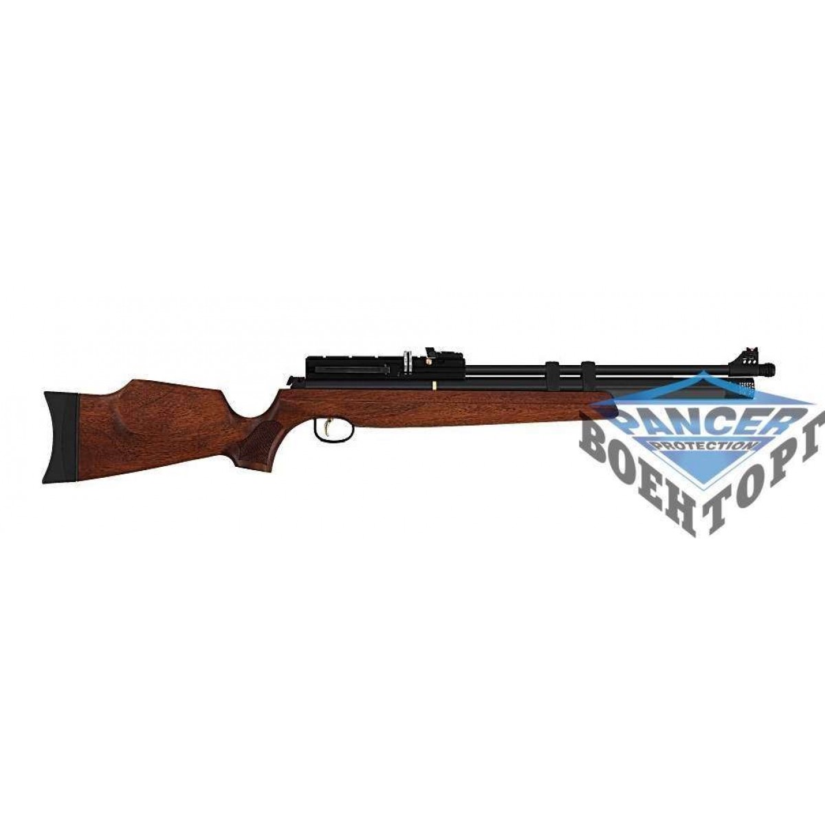 Відмінна турецька пневматична гвинтівка з попередньою накачуванням. Резервуар гвинтівки оснащений манометром і накачуємо тиск 200 бар. Ергономічне ложі, виготовлене з турецького горіха, забезпечує зручний хват гвинтівки і приємну стрілянину. Регульований спуск, з можливістю налаштування довжини і зусилля. Стовбур сталевий, нарізний. На гвинтівки встановлено відкрите прицільне пристосування з фібероптичними нитками. Також на гвинтівку можна встановити оптичний приціл. Запобіжник гвинтівки автоматичний. Зарядний гвинтівки – 10 свинцевих куль, також є можливість придбати запасні барабани.