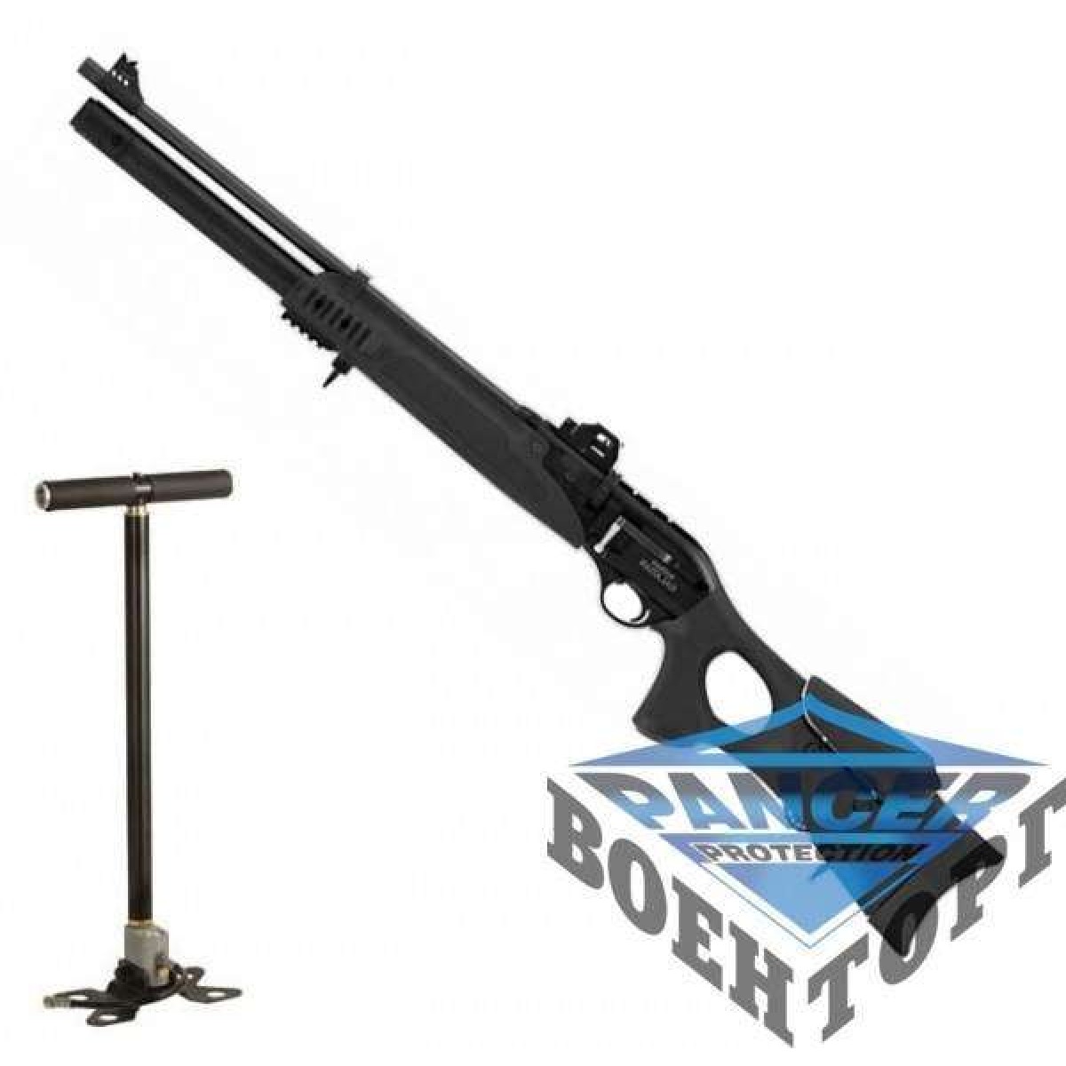 Ця пневматична гвинтівка виглядає досить масивно і переконливо. В основному, звичайно, з-за своєї конструкції. Справа в тому, що енергію пострілу власник гвинтівки виходить попереднім накачуванням стисненого повітря. При цьому максимальний робочий тиск у системі може досягати 200 бар. Цього достатньо щоб повідомити свинцевої кулі початкову швидкість до 360 м/с, що дуже не погано для такого типу зброї. У комплекті поставляється насос.