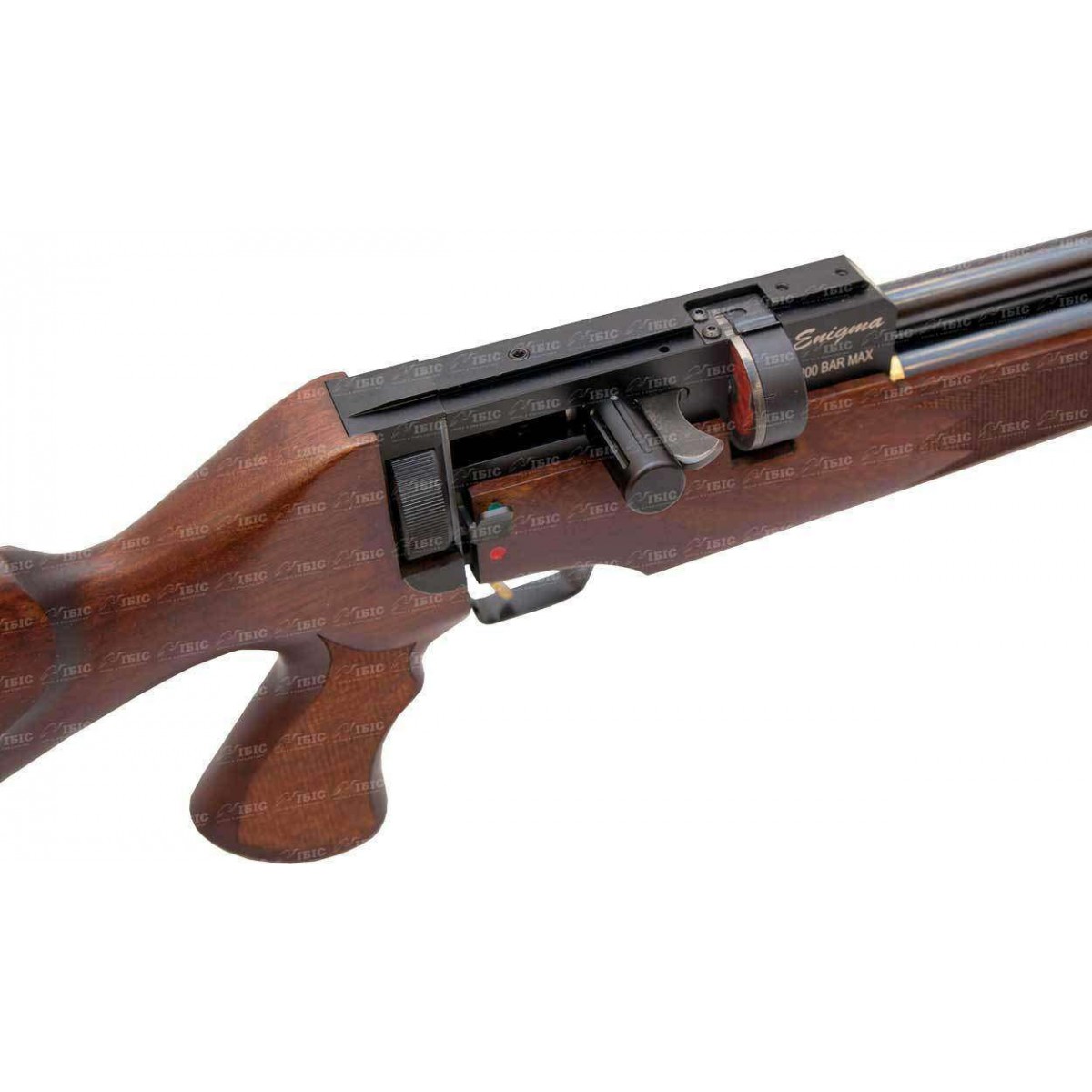 Enigma – сама потужна гвинтівка в лінійці компанії Brocock. До того ж, вона компактна – 88 см, а для транспортування легко розбирається на дві частини (варто лише повернути коліщатко над пістолетною рукояткою проти годинникової стрілки і приклад можна від'єднувати). Стовбур гвинтівки вільно вивішений, ємність магазину – 9 куль, механічні прицільні пристосування відсутні – гвинтівка призначена виключно для стрільби з оптикою. Резервуар розрахований на максимальний тиск 200 Бар і забезпечує більш 50 пострілів з енергією 25 Дж. На гвинтівку можлива установка саунд-модератора (глушника) Brocock.