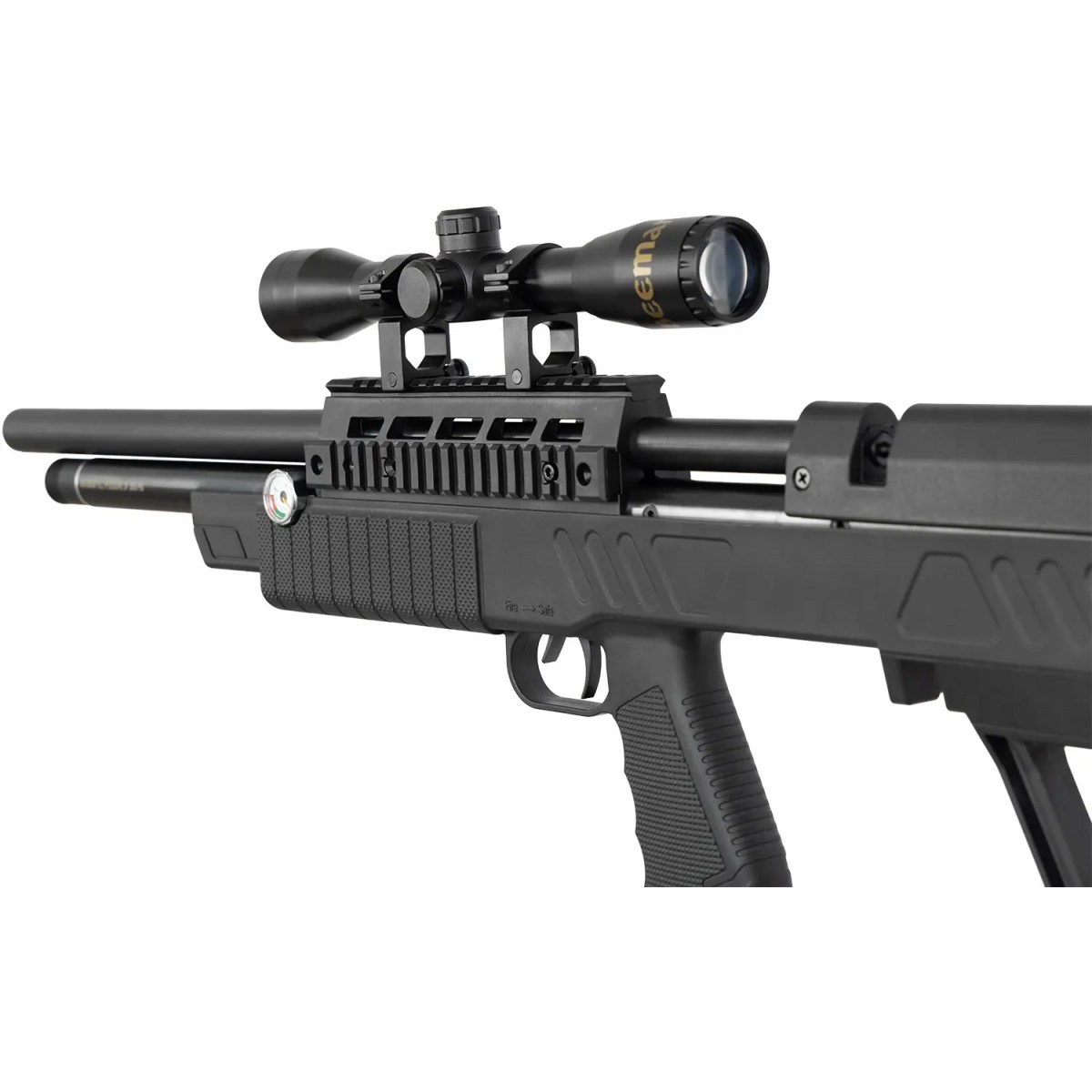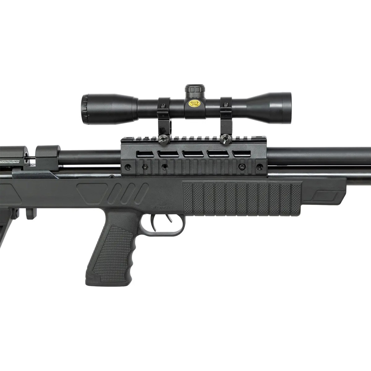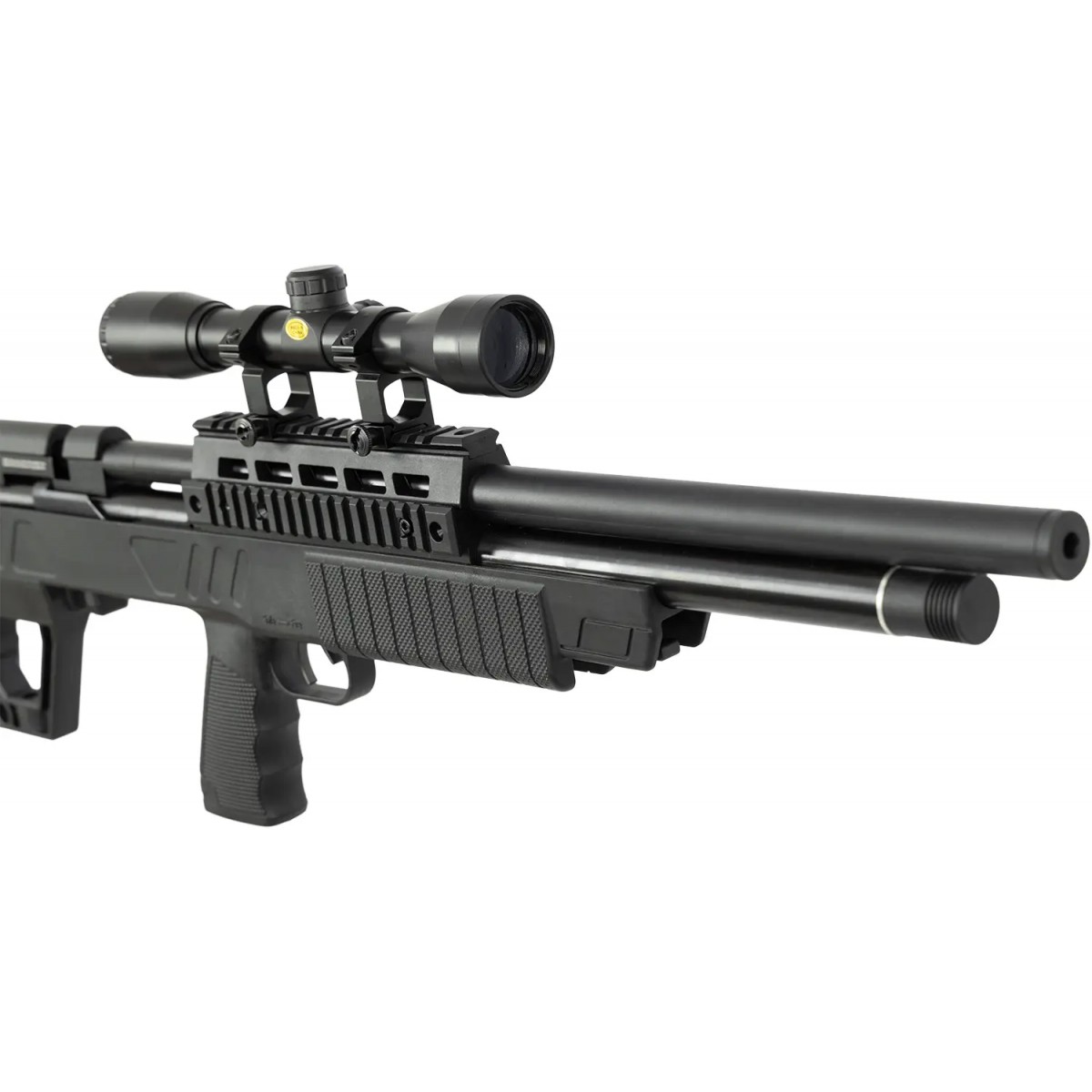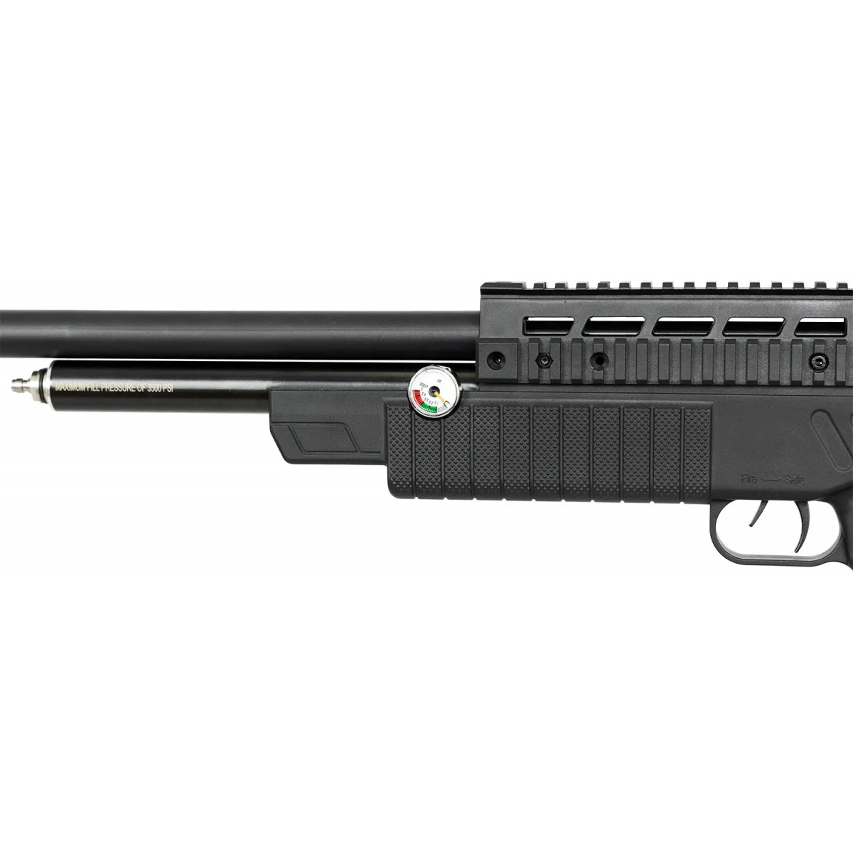 Ствол виконаний зі сталі і закритий спеціальним пластиковим кожухом із втулкою. За необхідності кожух знімається і на різьбу можна накрутити саундмодератор. Балон із повітрям розташований під стволом, а манометр - праворуч позаду рукоятки. Над стволом розташовані три планки Picatinny для встановлення прицільних пристосувань та інших додаткових аксесуарів.