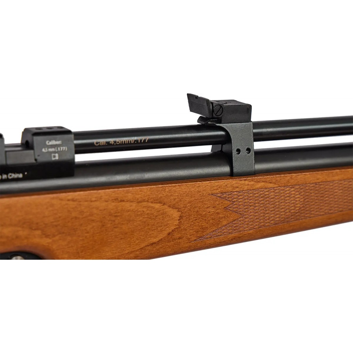 Гвинтівка оснащена відкритими прицільними пристосуваннями – ціликом і мушкою, а також 11-міліметровою планкою «ластівчин хвіст» на ствольній коробці для встановлення оптичного прицілу.