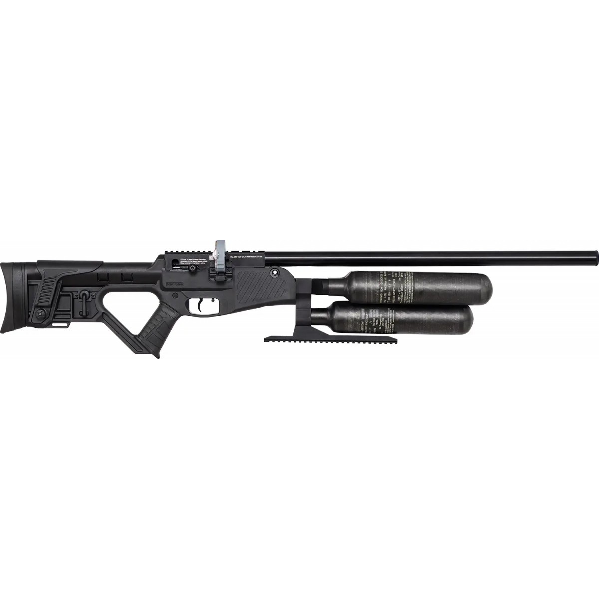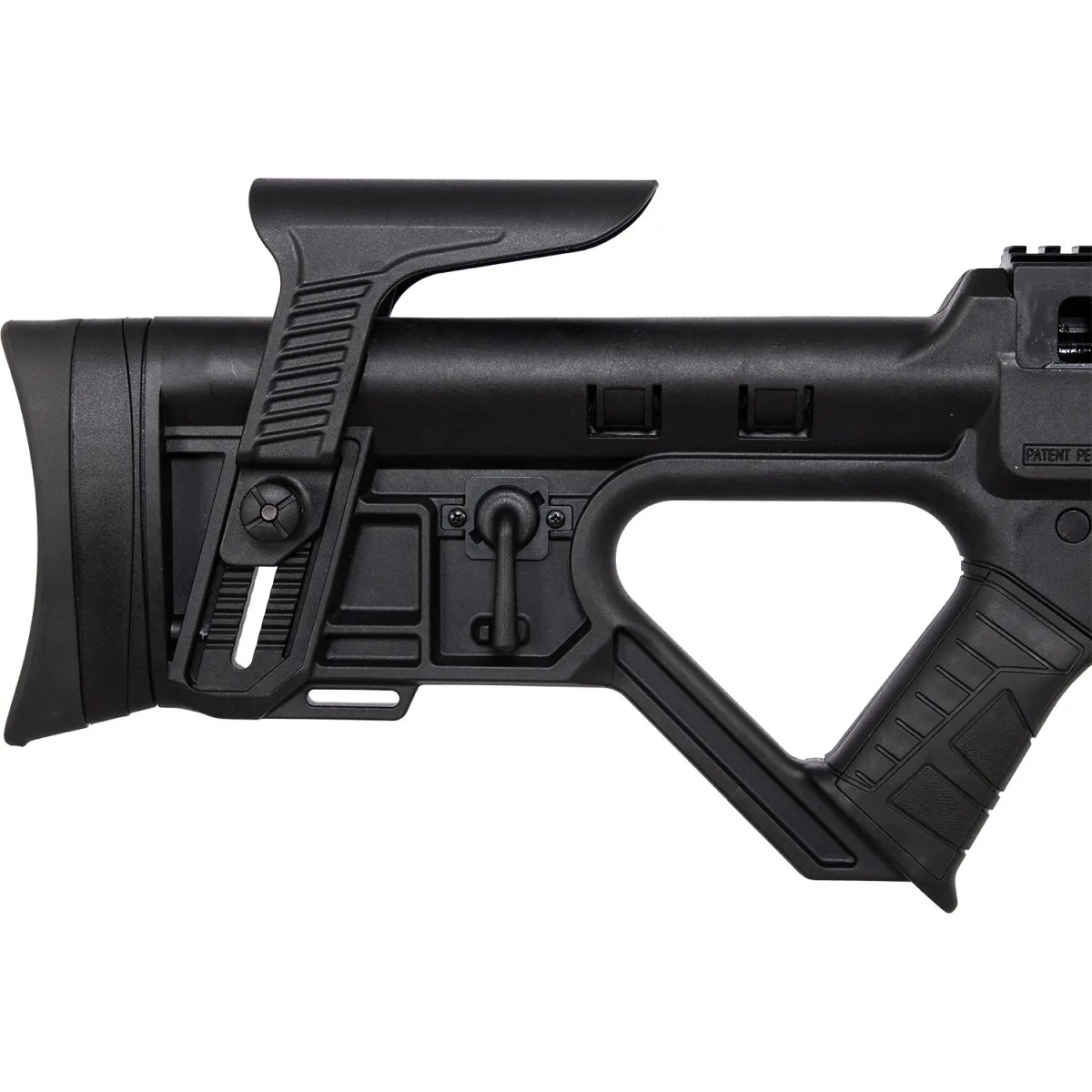 Для комфортнішої стрільби приклад має регульований потиличник і щоку, що дає змогу встановити оптимальні налаштування для потреб стрільця. Для встановлення оптичних прицілів гвинтівка оснащена планкою типу «ластівчин хвіст» і Weaver/Picatinny. З огляду на серйозну вагу гвинтівки, під резервуарами розташовано додатковий інтерфейс Picatinny для встановлення сошок і додаткових рукояток. Гвинтівку оснащено прогумованим текстурованим руків’ям, над яким розташований селектор режиму вогню.