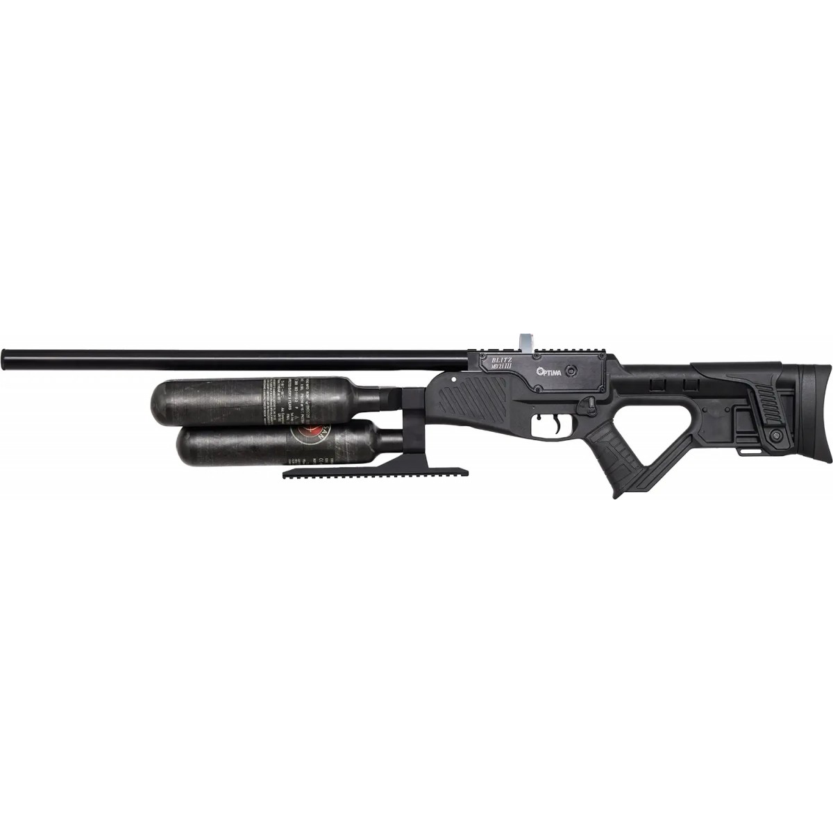 Optima Blitz Mevzi - одна з найбільш вражаючих лінійок PCP гвинтівок від Optima. Залежно від моделі гвинтівка має два, три або чотири резервуари високого тиску ємністю 580 см3 кожен і здатна вести вогонь в автоматичному режимі. Оснащена запатентованою системою подачі повітря для коректної роботи всієї системи.