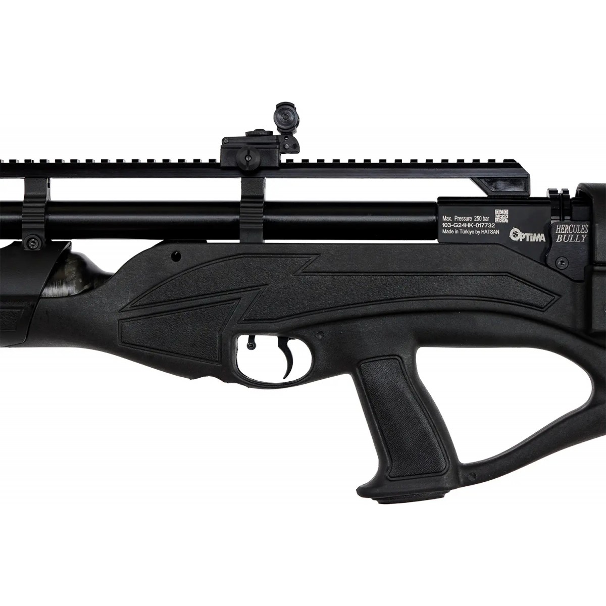Optima Hercules Bully - буллпап версія моделі Hercules. Гвинтівка має сталевий нарізний ствол довжиною 585 мм з інтегрованим саундмодератором Quiet Energy, що робить звук пострілу на 50% тихішим. Резервуар ємністю 500 см3 з робочим тиском 250 бар.
