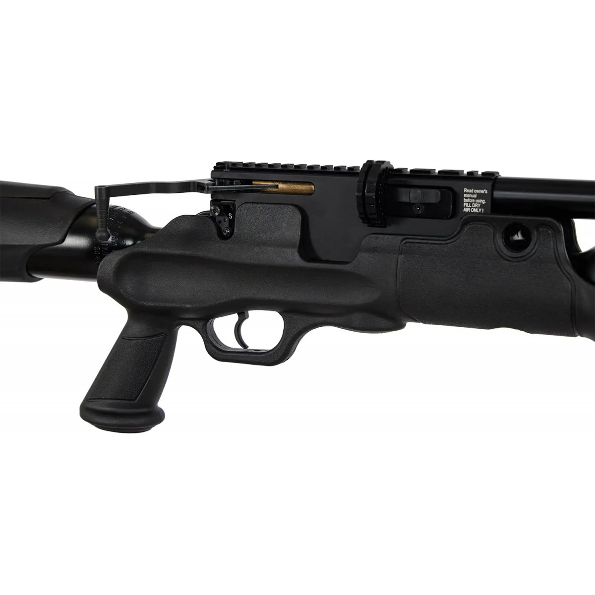 Приклад має регульований потиличник, що дає змогу підлаштувати його під індивідуальні потреби стрільця.
