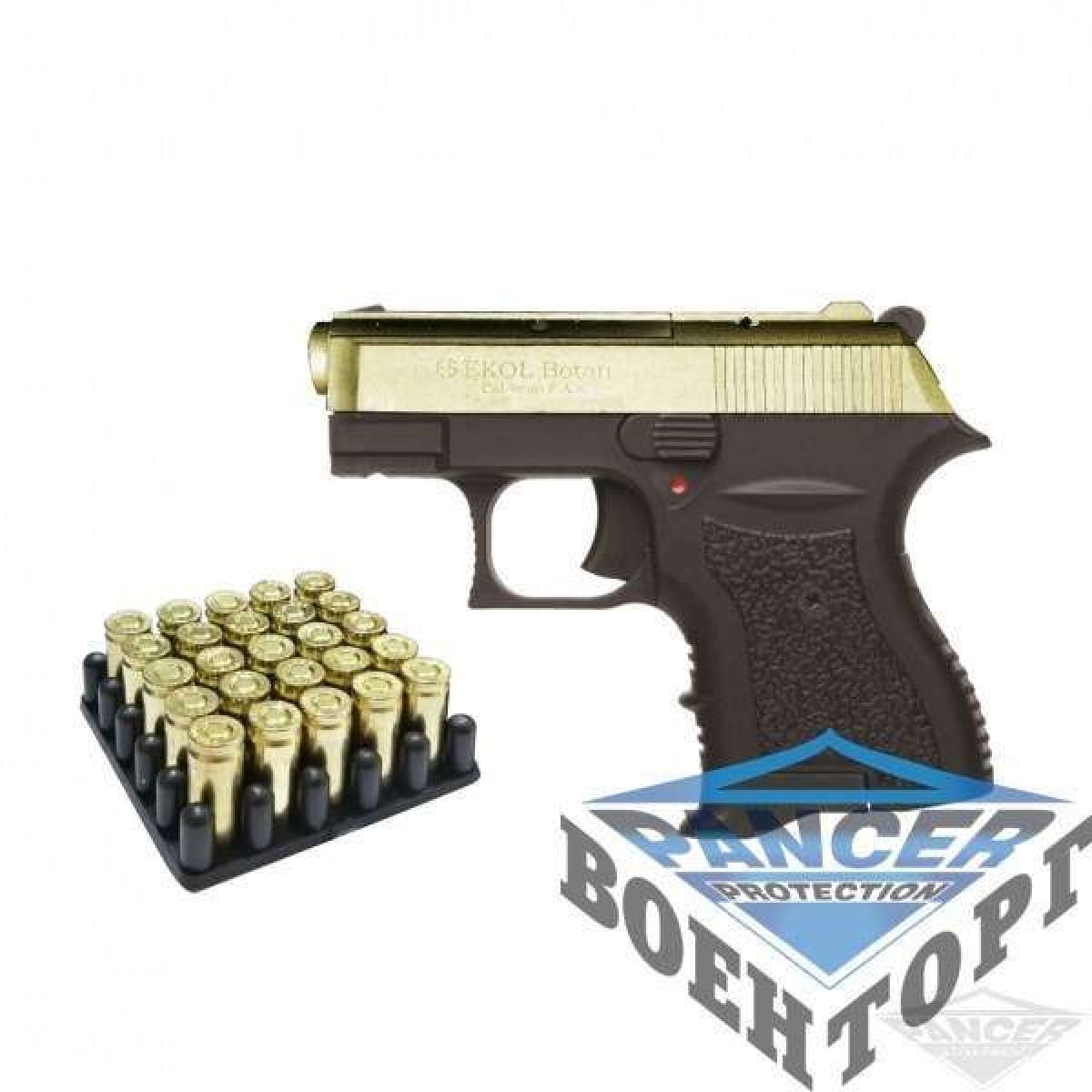Стартовий пістолет EKOL БОТАН. Проводиться турецькою компанією EKOL VOLTRAN. Він прийшов на зміну попередньої моделі EKOL VOLGA. До основних технічних характеристик можна віднести міцність корпусу, який виконаний з високоміцного полімеру - ЦАМ (цинк, алюміній, магній). Калібр пістолета 9 мм. Для стрільби використовується холостий патрон. Зарядний пістолета 6 патронів у магазині і один в пістолеті , тобто 6 + 1. Загальна довжина 123 мм, а висота 98 мм. Ширина пістолета так само не вилика 26 мм. Вага складає 457 р. Шумові пістолети призначаються для подачі звукових сигналів в цілях самозахисту (відлякати собак, залучити звуком увагу оточуючих у важкій для себе ситуації), а також при проведенні спортивних змагань та спортивно - масових заходів. Характеристики: - Тип Сигнальний пістолет - Виробник ZBROIA - Модель Ботан - Тип боєприпасу Холостий патрон - Місткість магазина 5 + 1 - Калібр 9 мм - Країна виробник Туреччина