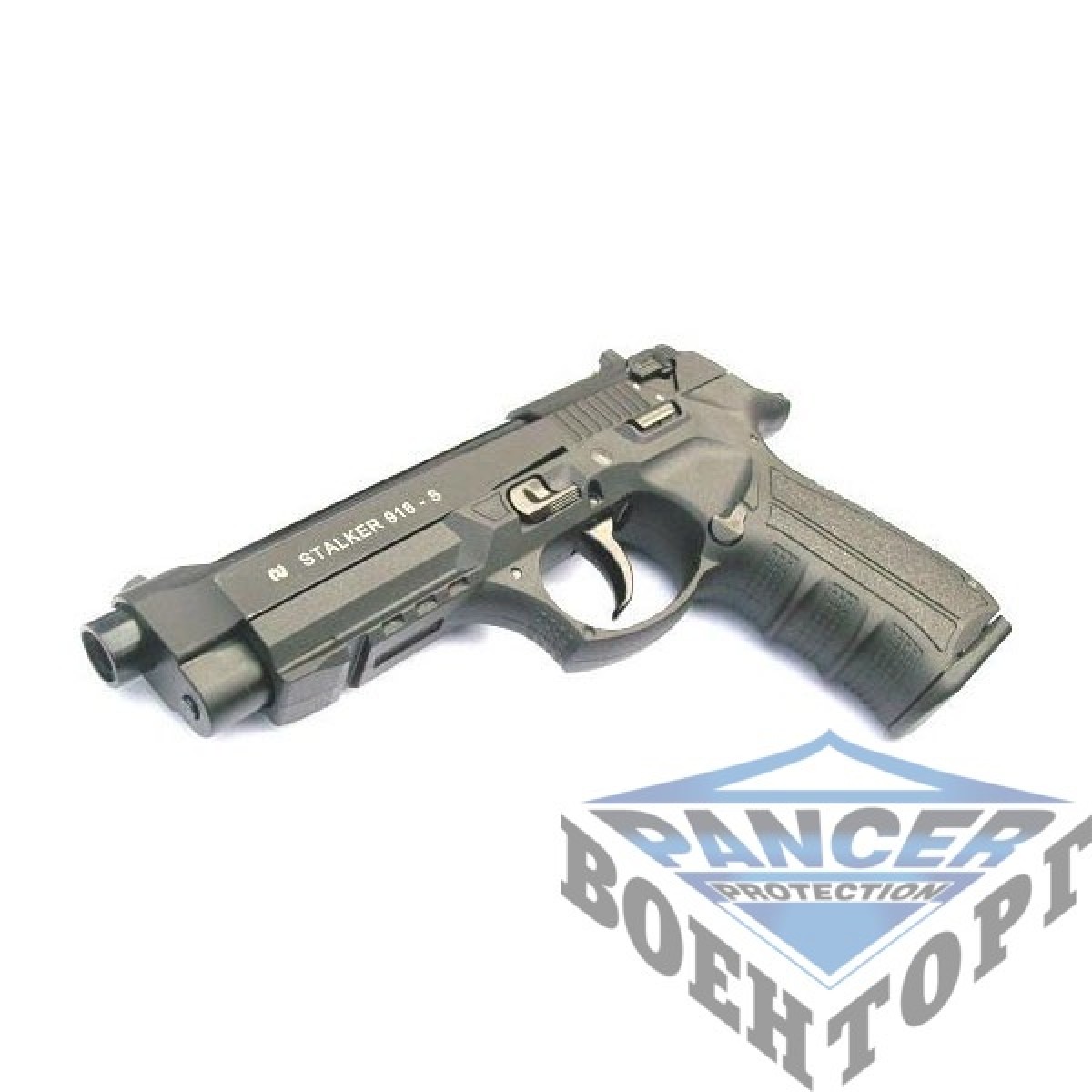 Сигнальний пістолет Stalker 918 від Турецького виробника Zoraki - суцільнолитий стартовий пістолет, копія бойового пістолета Beretta 92, виконаний з металевого сплаву. Пістолет стріляє шумовими патронами калібру 9 мм. Магазин вміщує 18+1 патронів. Довжина пістолета 218 мм, висота 143 мм, ширина 36 мм. Довжина ствола 132 мм. Важить пістолет 865 р. Ударно-спусковий механізм куркового типу подвійної дії. Неавтоматичний запобіжник, прапорцевий.