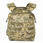 Плитоноска – основна одиниця військового спорядження. Оснащена керамічними чи металевими пластинами, вона захищає груди та спину від влучань. Якісна та технологічна плитоноска M3 Pro у розмірі M розрахована під плити 25×30 см. Виділяється запатентованою системою екстреного скидання від «Балістики» та рюкзаком під гідратор. У нашому інтернет-магазині можна придбати цю модель у відповідному патерні. Особливості товару Програмоване устаткування, за допомогою якого виготовляється плитоноска M3 Pro, дозволяє досягти високої якості виробу, точності виконання системи MOLLE, надійності всіх швів і з’єднань. Оздоблювальна стрічка, якою посилені критично важливі місця на чохлі, забезпечує неперевершену міцність. Інші характеристики, які роблять продукт від «Балістики» топовим, охоплюють таке: Передній і задній чохли розраховані для стандартних плит розміром 25×30 см зі скошеними верхніми кутами. У базовій комплектації такі пластини постачаються у всіх бронежилетах ЗСУ, Нацгвардії, СБУ, НАБУ, ГУР. Також виріб від «Балістики» сумісний з плитами SAPI M, ESAPI M. 15-міліметровий демпфер (3D-сітка завтовшки 5 мм і демпферні подушки з EVA-піни завтовшки 10 мм), який вкриває всю внутрішню поверхню плитоноски, ефективно зменшує заперешкодну деформацію. Крім того, пружна 3D-сітка та демпфер забезпечують вентиляцію та комфорт при носінні. Чарунки MOLLE на задній та передній частинах дають змогу навішувати будь-які підсумки, необхідні для роботи військового. «Балістика» відшиває підсумки для магазинів, гранат, аптечок, електронних пристроїв, засобів зв’язку тощо. Скелетний камербанд кріпиться на еластичну стропу, яка вміщена всередині заднього чохла і не рветься навіть у розтягнутому стані. Три ряди здвоєних чарунок MOLLE на камербанді дають змогу навішувати бічні бронепакети на внутрішню сторону та підсумки з боєкомплектами – на зовнішню. Ергономічні плечові лямки також оснащені 3D-сіткою та товстим демпфером, який сприяє рівномірному розподіленню ваги на плечах. Передня частина лямок виконана з гіполону, надзвичайно міцного матеріалу. Вона фіксується на липучку у клапані, на якому також продубльована вставка із гіполону, у яку зручно вкладати приклад зброї при стрільбі. Водночас за допомогою велкро регулюється і довжина лямок. А зверху на них вміщено кілька чарунок MOLLE для закріплення невеликих підсумків або лямок штурмового рюкзака. Система екстреного скидання виконана з кількох сталевих тросів, після висмикування яких плитоноска миттєво розкладається на частини. Дві ручки приводу розташовані на рівні грудей, збоку від пластини, та ховаються на внутрішню сторону, де їх легко намацати. Вони виконані у формі ручок-хлястиків, а не кілець, та додатково фіксуються кнопками, що унеможливлює випадкове зачеплення. Процес скидання розрахований на легкий, короткий рух і займає частки секунди. Камербанди оснащені безшумними пряжками для швидкого зняття. Ними були замінені клапани розкривання з липучками у попередньому поколінні наших плитоносок. У задню стінку М3 Pro інтегрований рюкзак під гідратор (до 3 л) або інші малогабаритні речі. Широка панель Velcro на передньому чохлі, нашита на чарунки, забезпечує фіксацію ідентифікаторів, а також модуля захисту «Пелерина». На задньому чохлі також є така панель, але менша. Бічний шов посилений стропою, на яку також можна ч