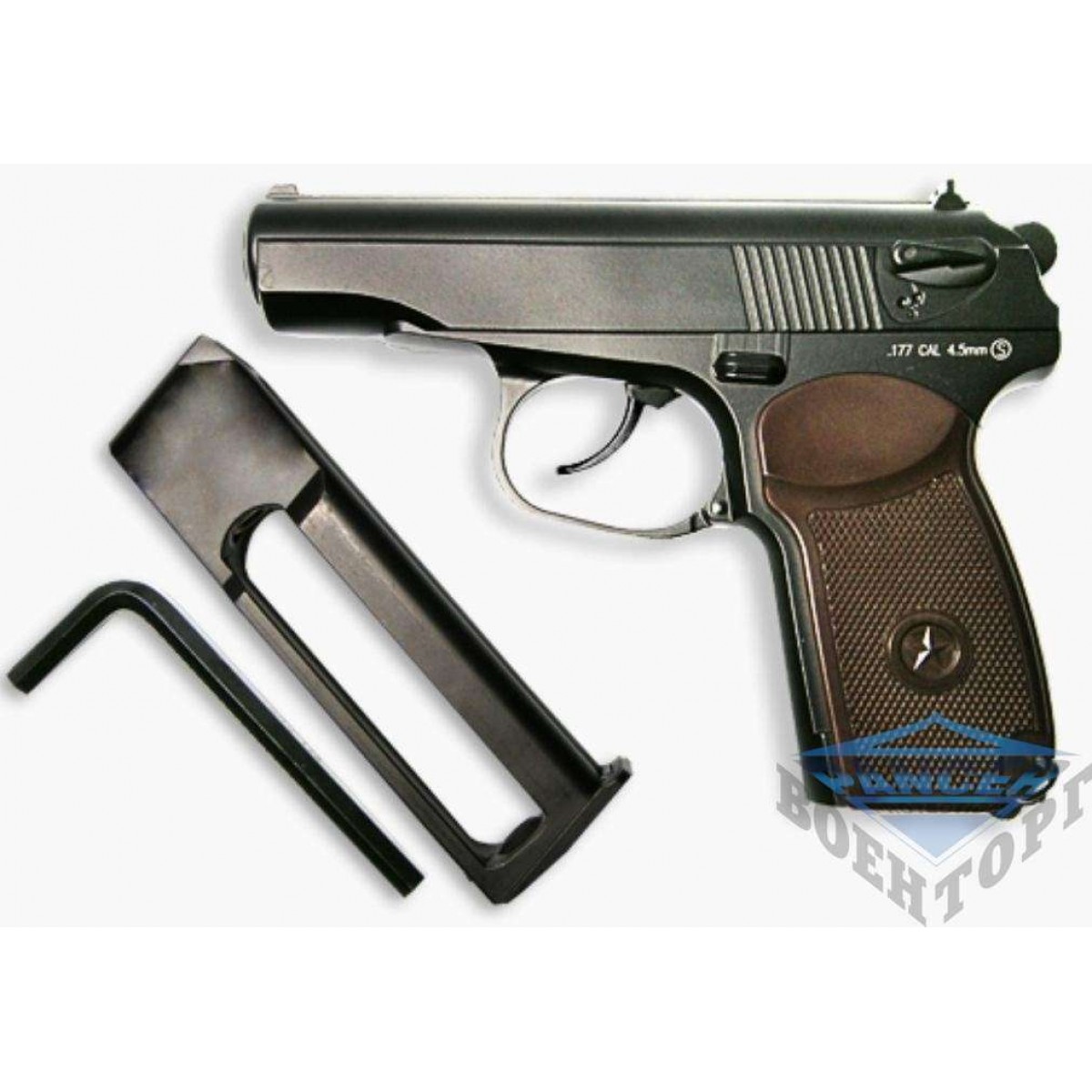 KWC PM — недорогий газобалонне пневматичний пістолет, повторює класичний пістолет Макарова. Початкова швидкість польоту кульки становить 130 м/с, а ємність магазину – 18 сталевих кульок. Балон CO2 фіксується в магазині.