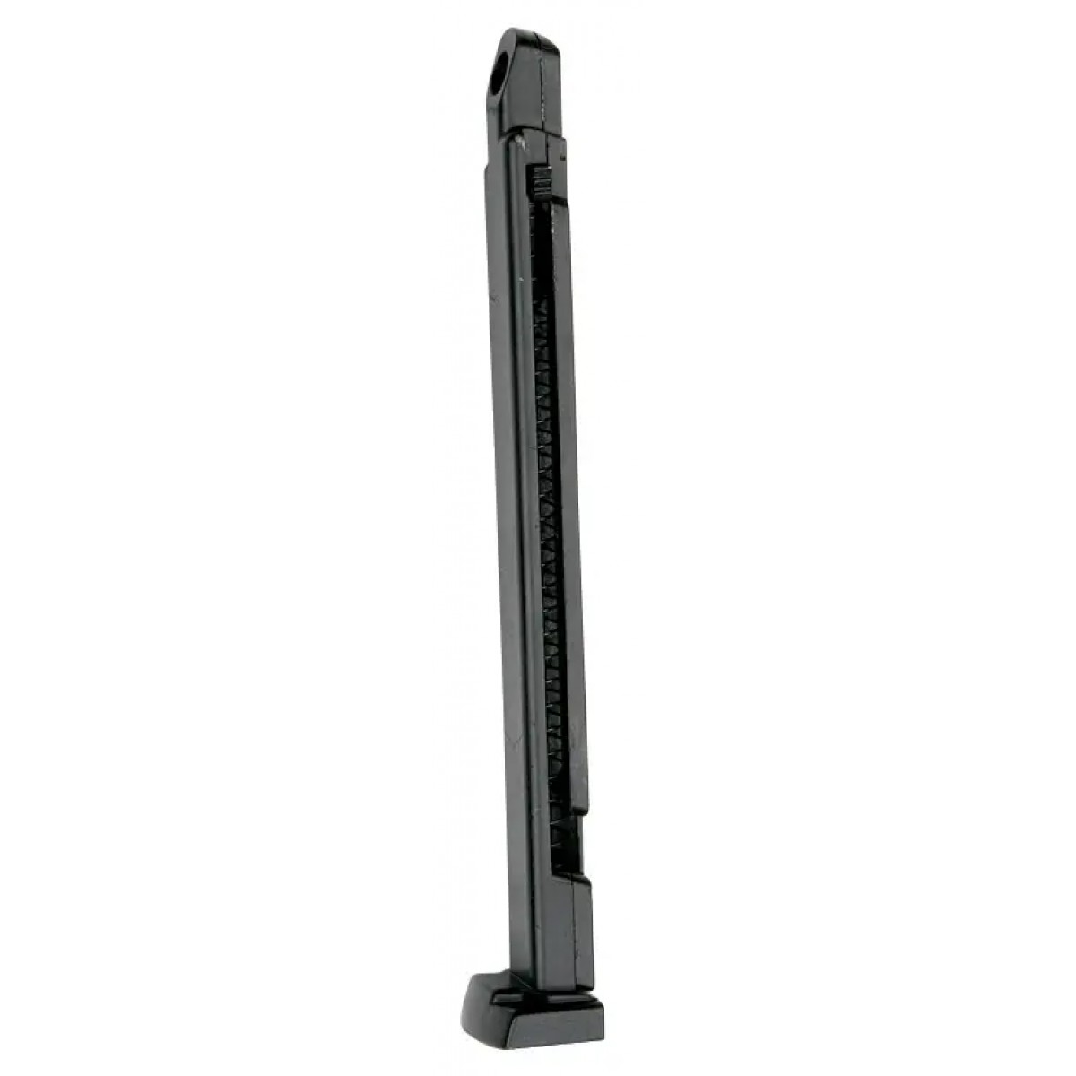 Магазин відокремлюється за допомогою кнопкового механізму. Балон СО2 установлюється окремо від магазина в спеціальну камеру в задній частині руків’я.