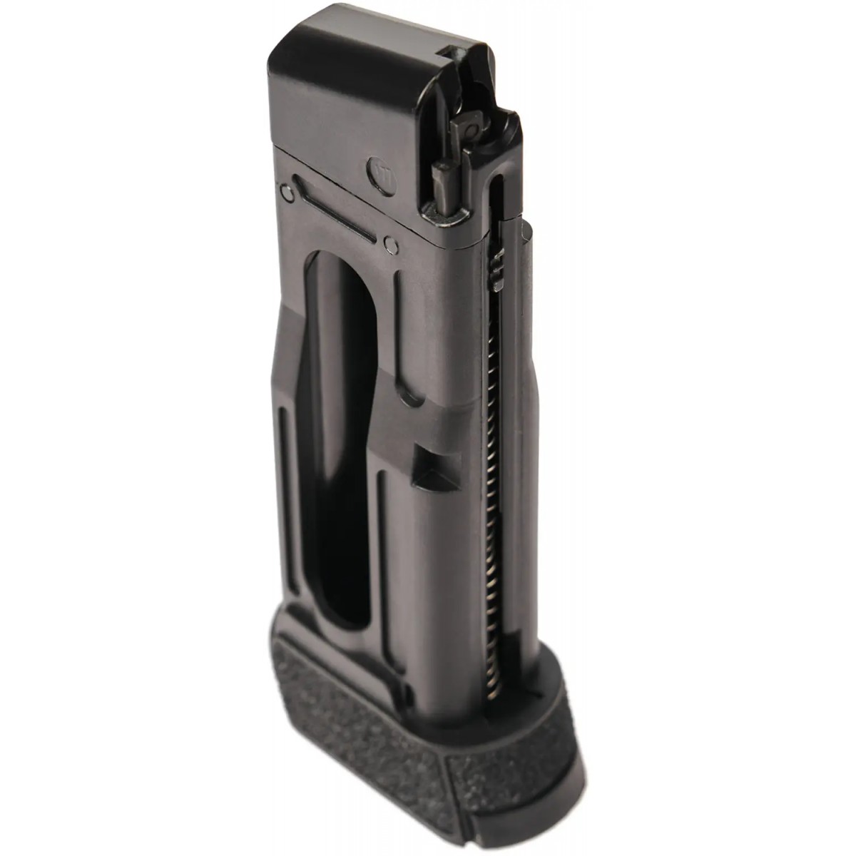 Пістолет працює за рахунок стандартного балончика CO2 з вуглекислим газом, який розташований безпосередньо в самому магазині. Сам магазин вміщає в себе 12 кульок BB в калібрі 4,5 мм.