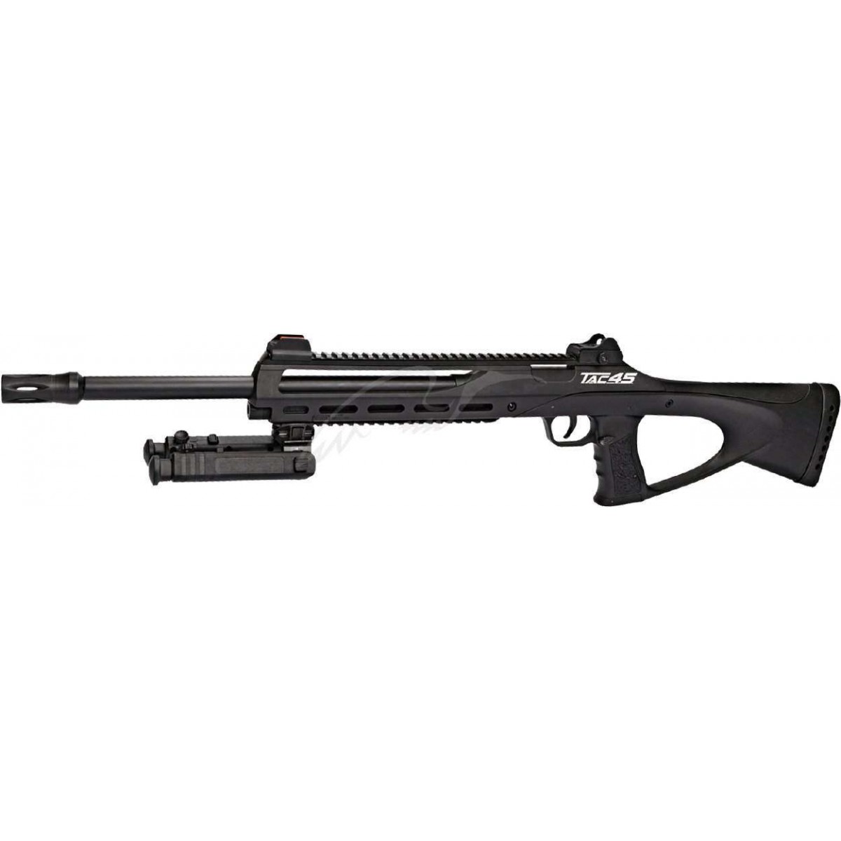 ASG TAC-4.5 - легка пневматична CO2 гвинтівка, виконана в тактичному стилі. Корпус виготовлено з міцного полімеру, ствол - металевий. Використання стандартних СО2 балончиків гарантує високий темп стрільби в напівавтоматичному режимі, без додаткового зведення після кожного пострілу.