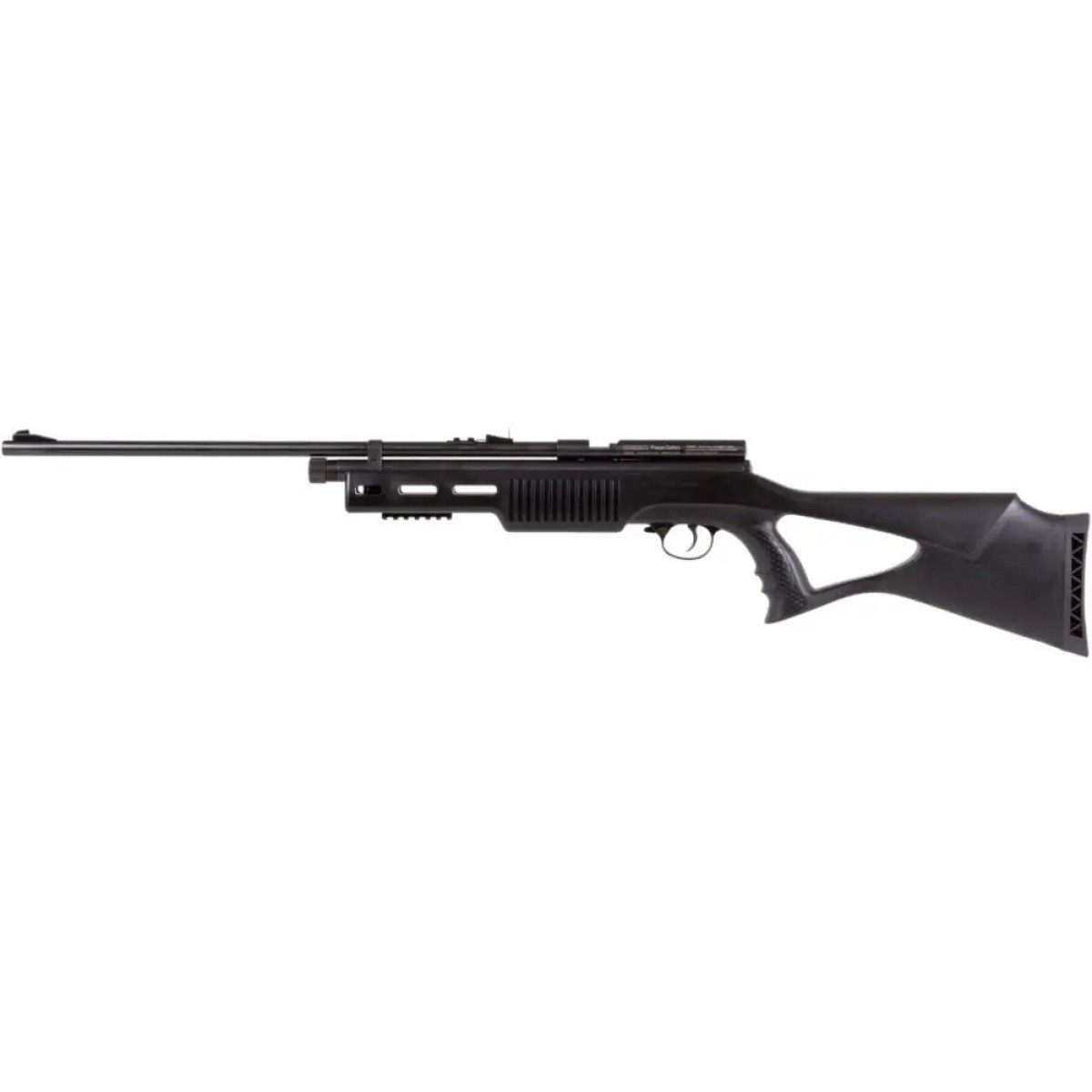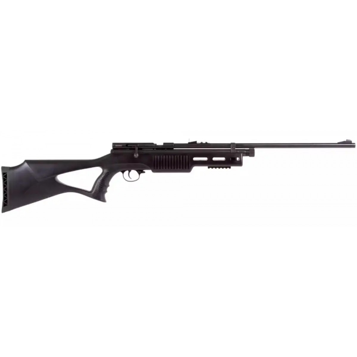 Ергономічна ложа гвинтівки, виготовлена з міцного полімеру, має пістолетне руків’я для більш зручного використання та інтегровану планку Weaver/Picatinny для установки підствольних аксесуарів. Нарізний ствол гвинтівки оснащений відкритими прицільними пристосуваннями - регульованим ціликом і мушкою.