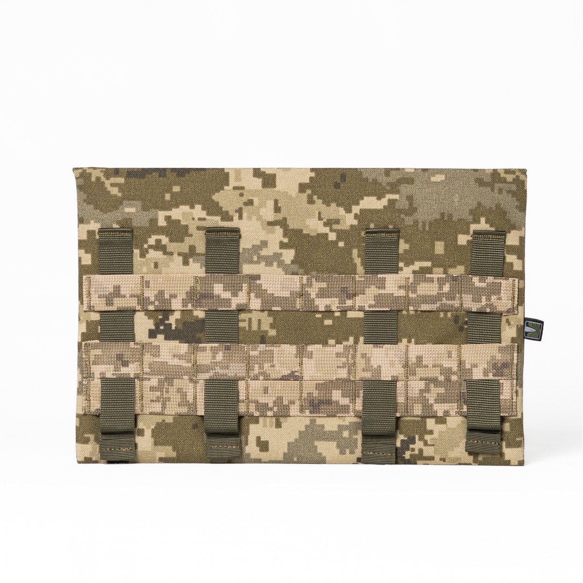 Бронежилети та плитоноски покривають далеко не всі критичні ділянки тіла. Тому існують підсумки, що виконують захисну функцію для боків. Якщо вставити в них балістичні пакети та прикріпити до камербандів, вони ефективно протидіятимуть ураженням уламками у цю зону. «Балістика» розробила цілу лінійку кишень та самих бічних плит у різних розмірах, які підійдуть воїнам із різною статурою. Особливості кишень для бічних плит Підсумки у розмірі 20×30 см пристосовані для розміщення бронеелементів не лише на камербандах, але й на інших частинах спорядження, де є чарунки MOLLE. М’які бронепакети 1-го або 2-го класу захисту у відповідному розмірі можна купити окремо. До безперечних переваг текстильних виробів належать такі: Міцна зносостійка тканина витримує суворі умови експлуатації, часті механічні пошкодження та несприятливі погодні умови. Водовідштовхувальний шар здатен впродовж тривалого часу протистояти потраплянню у кишеню вологи. А завдяки високій щільності та цупкості матеріалу вироби не деформуються та не перекручуються. Плоска форма підсумка та поміщеного в нього гнучкого бронепакета забезпечує анатомічну посадку та зручність рухів. Єдине відділення оснащене клапаном з липучкою, який надійно утримує бронеплиту всередині, запобігає її ковзанню чи випадінню під час активних дій. Кишені можна зафіксувати на внутрішній стороні камербандів і таким чином залишити зовнішні ряди чарунок вільними для навішування іншого оснащення. «Балістика» виготовляє кишені різних кольорів, як-от мультикам, ММ-14, олива, койот, чорний, що дозволяє дібрати виріб відповідно до забарвлення основної амуніції. У комплекті постачаються два підсумки, завдяки чому можна покрити одразу обидва боки. Технічні характеристики Розмір: 20×30 см. Колір: ММ-14. Матеріал: Cordura 1000D. Стропа: нейлон. Липучка: Velcro.Основні характеристики Кишені для бічних плит 20*30 (2шт) (ММ-14)