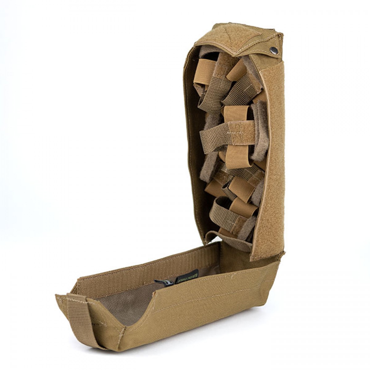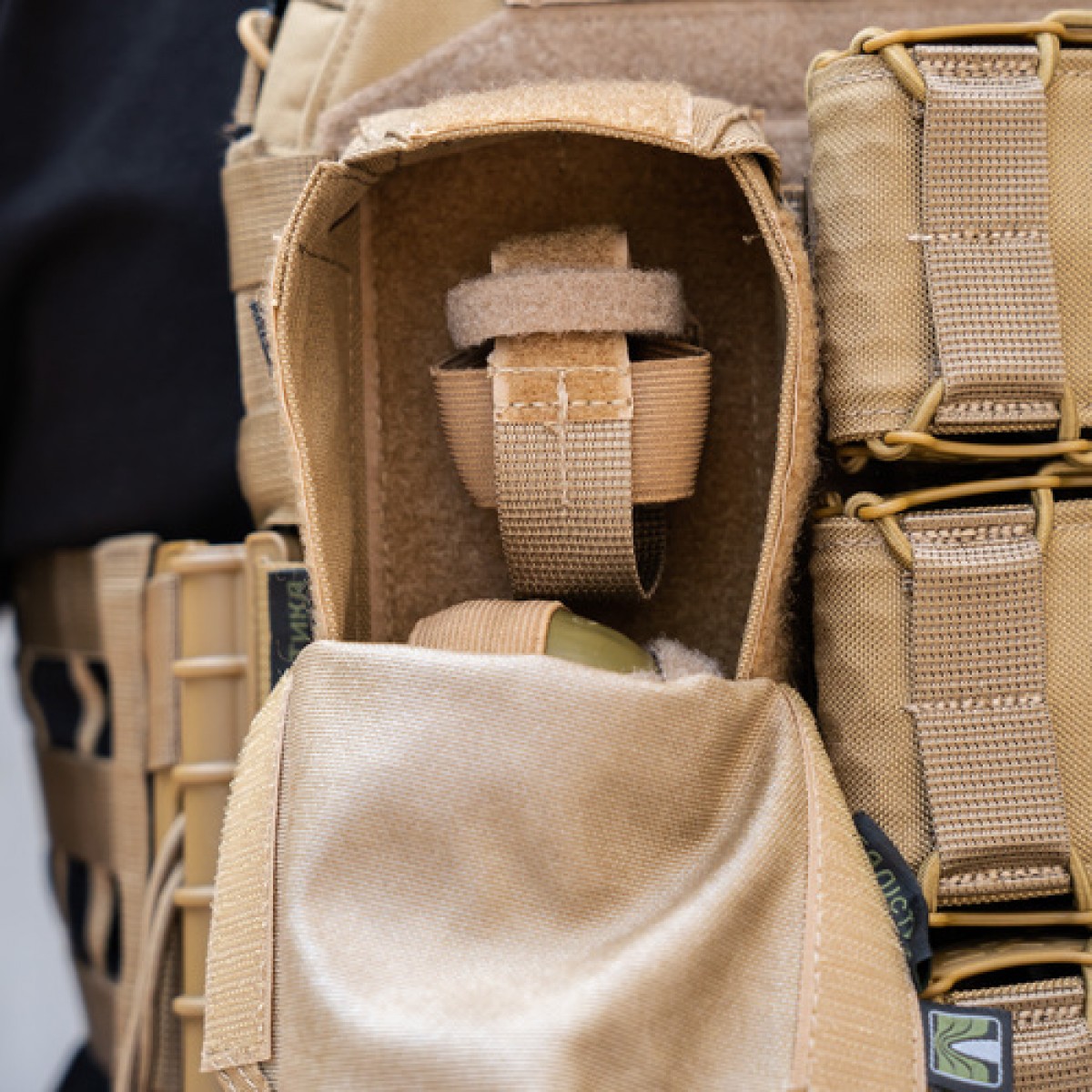 Ці підсумки призначені надавати оперативний доступ до гранат. Вони зносостійкі, функціональні та міцно фіксують боєприпаси, щоб запобігти їхньому випадковому випадінню. Касета для гранат від «Балістика» – це універсальне рішення для зручного перенесення та використання ручних гранат M67, РГД-5, Ф1, РГО, РГН, DM-51 та подібних. Особливості касети для гранат Виріб від «Балістики» вміщує 3-4 гранати залежно від їхнього типу та дозволяє швидко дістати і використати їх за призначенням. Іншими вагомими перевагами є такі: Підсумок оснащений надійною системою кріплень. До спорядження він фіксується на дві вертикальні стропи MOLLE, а всередині гранати кріпляться на липучку Velcro. Кришка виробу по периметру також кріпиться на липучку Velcro, що дозволяє швидко і з мінімальними зусиллями відкрити доступ до гранат. У комплекті міститься вісім одноразових велкро-павучків, які чіпляють гранату безпосередньо до внутрішньої стінки підсумка. Це дозволяє миттєво вхопити гранату та кинути її без необхідності знімати кріплення, а це забезпечує швидшу реакцію в критичний момент. Додаткові павучки можна купити окремо. Жорстка платформа з MOLLE тримає форму підсумка, що дозволяє надійно навісити його на спорядження навіть із чотирма гранатами загальною вагою до 2,5 кг. Підсумок розроблений як штурмовий і підходить для зручного транспортування великої кількості гранат та швидкого використання під час наступальних операцій. Для пошиття тактичних виробів ми використовуємо Cordura 1000D, яка має водовідштовхувальний шар, є міцною, стійкою до стирання, проколів та розриву. На виробах використовується стропа відповідного кольору, яка була створена методом плетіння, аналогічним Murdock Webbing. Крім того, на плитоносках та іншій продукції використовується липучка з відповідним забарвленням. Технічні характеристики Місткість: 3-4 гранати. Розмір порожнього підсумка: 250×80×70 мм. Вага: 210 г. Матеріал підсумка: Cordura 1000D. Стропи: Polyamide 25 мм.Відгуки про Касета для гранат (Койот)