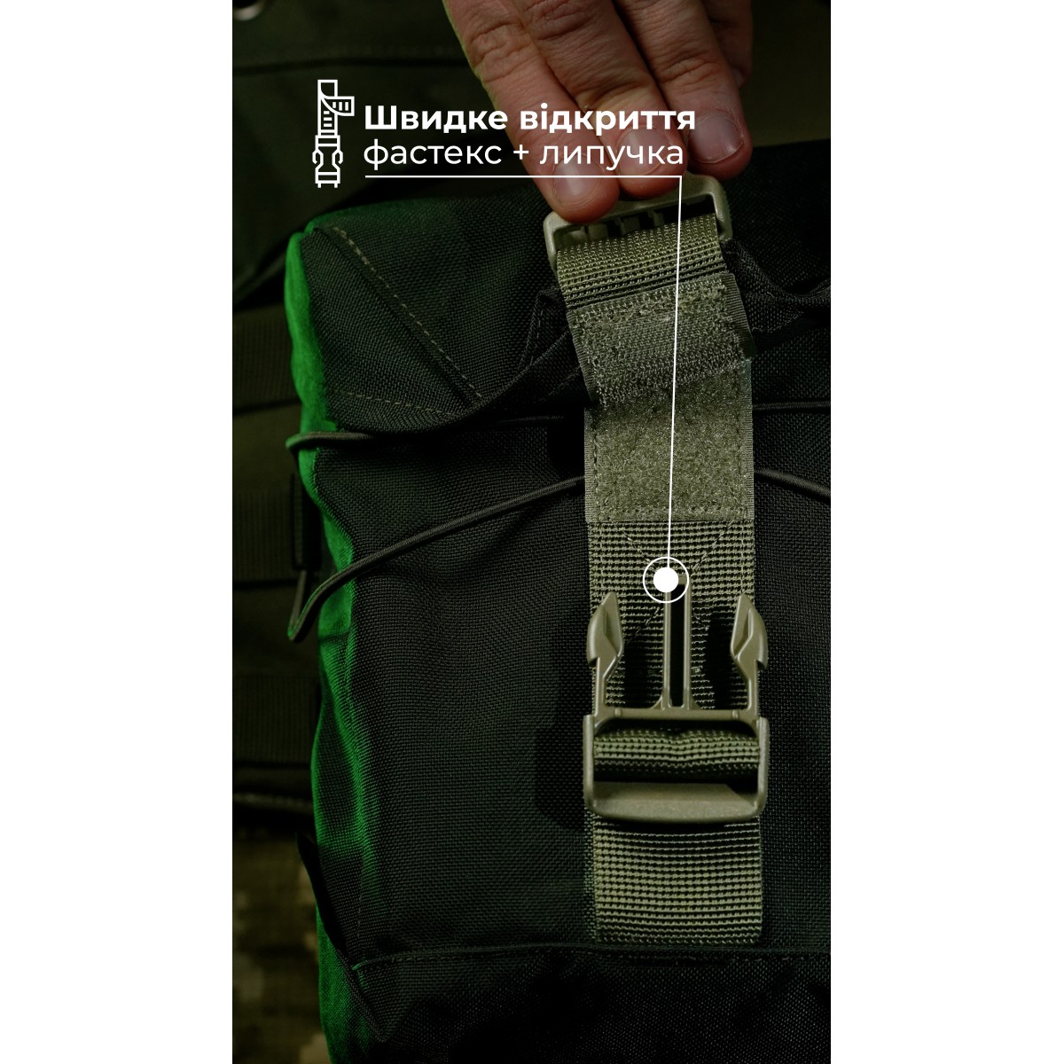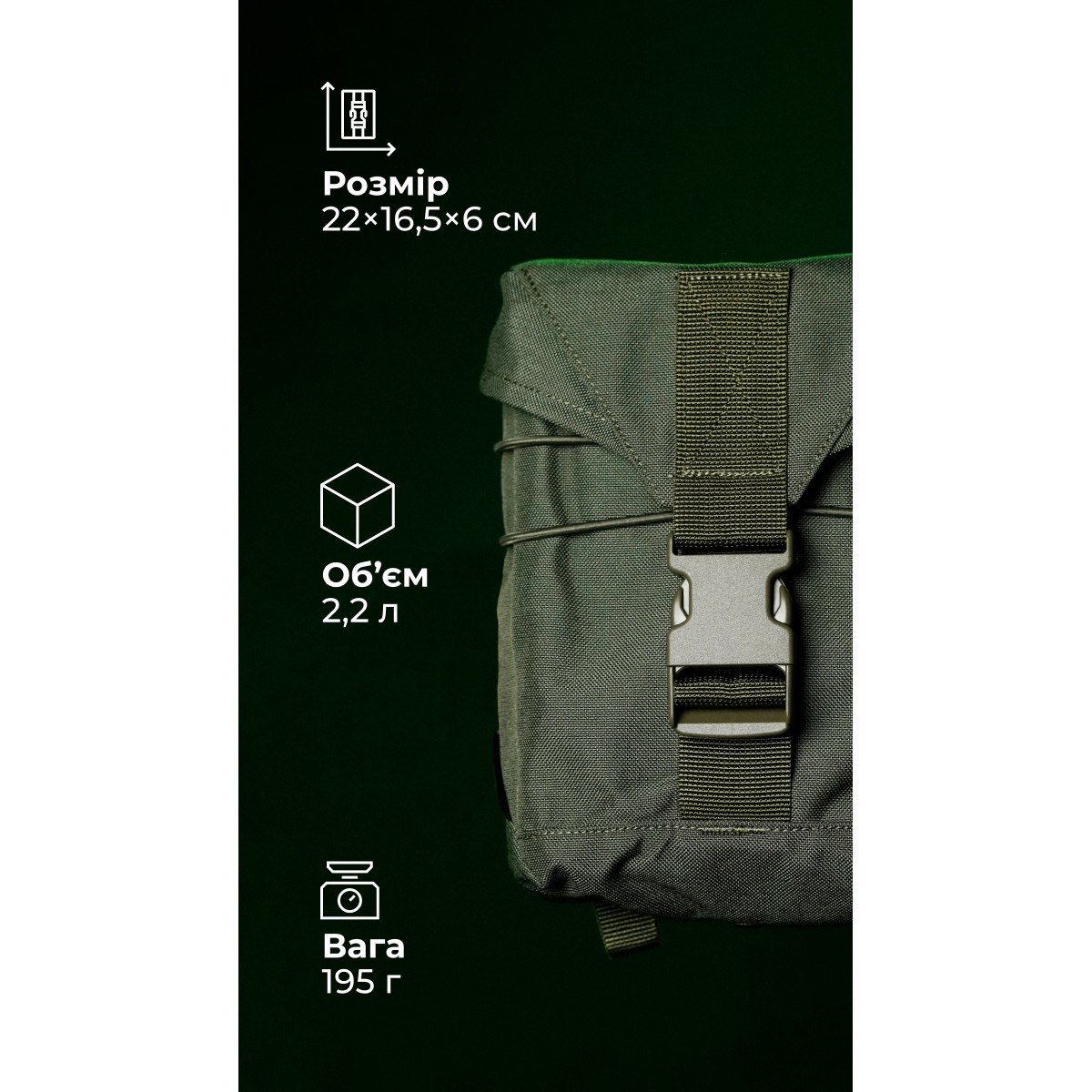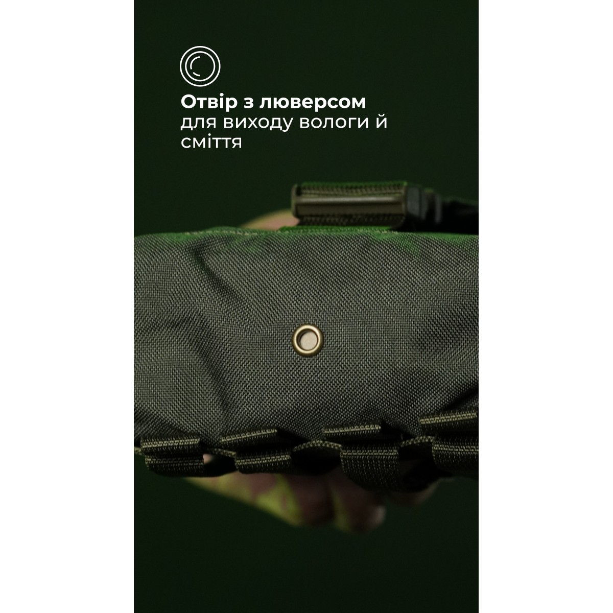 Підсумок «Стрічник» створений для перенесення короба на 200 набоїв до кулемета М249. ✅ Ключові переваги Вміщує короб на 200 набоїв калібру 5,56×45 мм Застібається на фастекс і липучку Посилені стропами боковини Прямокутна форма дає змогу швидко ставити короб будь-яким боком Може використовуватися як утилітарний підсумок Вміщує 5 магазинів AR/AK Кріпиться на моллі Стягується шоккордом для компактності Отвір з люверсом на дні для виходу вологи й сміття Витривалі матеріали – нейлон 1000D (аналог Cordura) Фурнітура WJ (Південна Корея) Опис товару Підсумок складається з єдиного відділення, яке закривається клапаном із фастексом та велкро. Липучка під клапаном закрита заглушкою на випадок, якщо ви волієте обмежитись лише фастексом. Але незалежно від того, закритий підсумок лише на липучку чи на фастекс і на липучку, він розкривається практично миттєво. Завдяки жорсткішій фіксації фастекса підсумок зручно закривати після вилучення короба навіть наосліп однією рукою – тризуб завжди перебуває у правильному положенні і його не потрібно шукати. Зсередини на боковинах нашиті стропи, які допомагають зручніше вкладати короб, підтримують форму підсумка та протистоять зношуванню. Через фасад протягнутий шоккорд для зменшення об’єму порожнього або напівзаповненого підсумка. Таким чином можна зафіксувати всередині вміст, щоб він не зміщувався і не випадав. Підсумок має прямокутну форму та не має скосів, тому короб можна розміщувати в ньому у будь-якому напрямку та носити зі зручного вам боку. Підсумок кріпиться до спорядження на систему MOLLE. Займає ширину 4 чарунок на вашому РПС чи рюкзаку. У дні вирізаний отвір із металевим люверсом, через який виходить дрібне сміття, пісок, волога. ❓ Часті запитання Чи адаптований підсумок під скошену форму короба? Ні, підсумок має прямокутну форму, без скосів. Тому не потрібно зайвий раз звіряти, чи потрібним боком ви ставите короб. Як доглядати за підсумком? Рекомендуємо прати вручну або очищувати м’якою щіткою з водою та безфосфатним порошком.Відгуки про Підсумок для короба під кулемет М249 "Стрічник" (Олива) ТМ Балістика