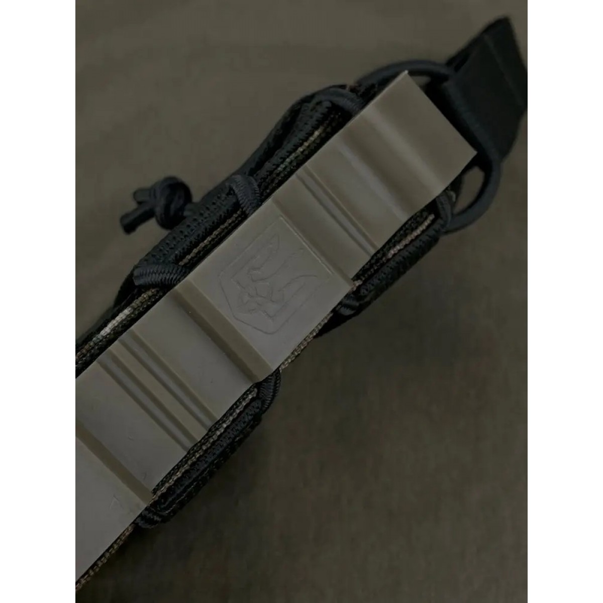 Для забезпечення надійності і фіксації магазину, використовується якісна нейлонова резинка, яка виготовляється на замовлення. Це дозволяє підсумку точно підійти під розмір магазину та забезпечити його безпечне і надійне зберігання та перенесення.