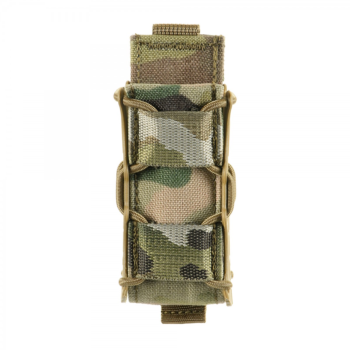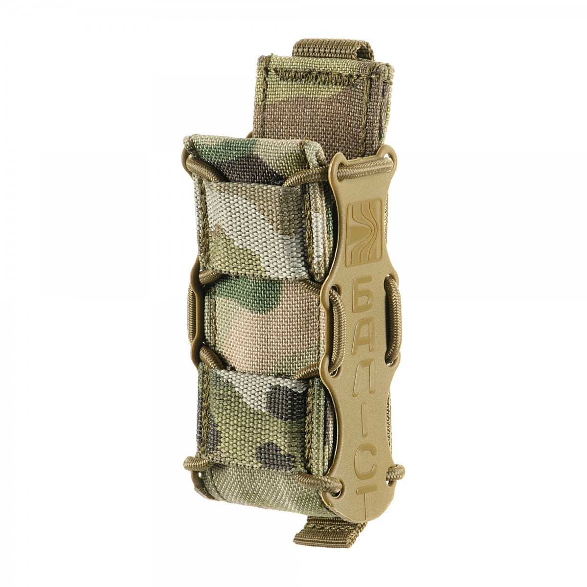 Підсумок «Колчан» у цій модифікації призначений для носіння заповненого магазину від Глок-17, Форт-12/-17/-21 та інших подібного розміру. Виріб виконаний із високоякісного пластику, Cordura 1000D, а також поліамідної стропи. Всі ці матеріали є міцними та довговічними, тому наш підсумок не порветься та не протреться навіть через рік інтенсивного використання. Особливості виробу Продумана до дрібниць конструкція забезпечить надійну фіксацію магазину і зручну експлуатацію підсумка: Відкритий доступ до магазину дозволяє виконувати перезарядку якнайшвидше. Жорсткі бічні стінки виготовлені з високоякісного пластику, який запобігає їхній деформації та прогинанню під тиском магазину. Ці ж стінки та щільна резинка не дають вмісту випасти при навантаженні та під час руху, тому «Колчан» не потребує додаткової фіксації. Завдяки можливості розв’язати резинку та відрегулювати її натягнення кожен стрілець може дібрати оптимальну для нього жорсткість фіксації магазину. Підсумки мають менші габарити порівняно з аналогами, представленими на ринку, що забезпечує посадку декількох виробів поруч, щоб ті не заважали один одному. На передній панелі підсумка розміщені дві чарунки MOLLE, що дає змогу прикріпити до нього інші невеликі підсумки чи інвентар. Задня стінка вища за передню, що дозволяє швидко, майже наосліп вставляти магазин і, власне, розміщувати колчани один на одному для створення подвійних підсумків. Технічні характеристики Матеріал: Cordura 500D\1000D. Матеріал стінки: поліамід. Внутрішня частина: формований пластик. Розміри підсумка: Ширина: 4 см. Товщина: 3 см. Висота передньої стінки: 9 см. Висота задньої стінки: 11 см.Основні характеристики Підсумок під магазин пістолету "Колчан" (Мультикам)