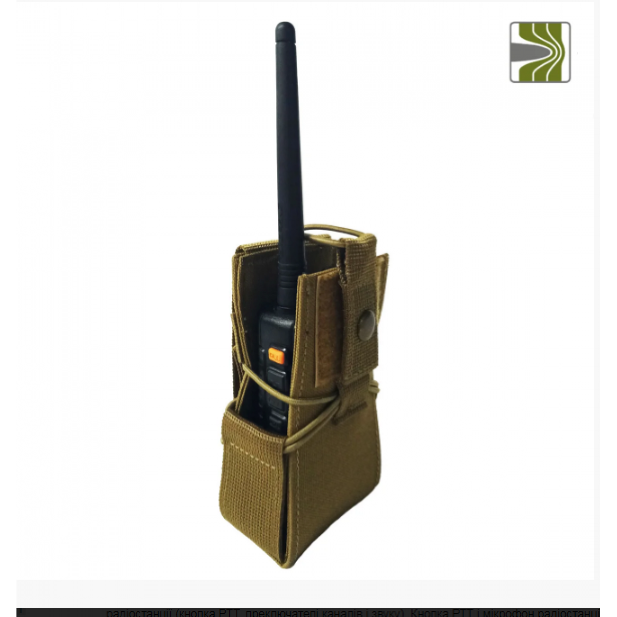 Конструкція підсумка для радіостанції забезпечить доступ до основних органів управління портативної радіостанції (кнопка РТТ, преключателі каналів і звуку). Кнопка РТТ і мікрофон радіостанції залишаються відкритим, що дозволить Вам використовувати радіостанцію без гарнітури (при розміщенні подсумка на плечі розвантажувальних систем). Підсумок сумісний з практично будь-якими моделями поширених радіостанцій: таких як Kenwood К2АТ, К4АТ, TH-F5 і радіостанцій типу Walkie-Talkie.