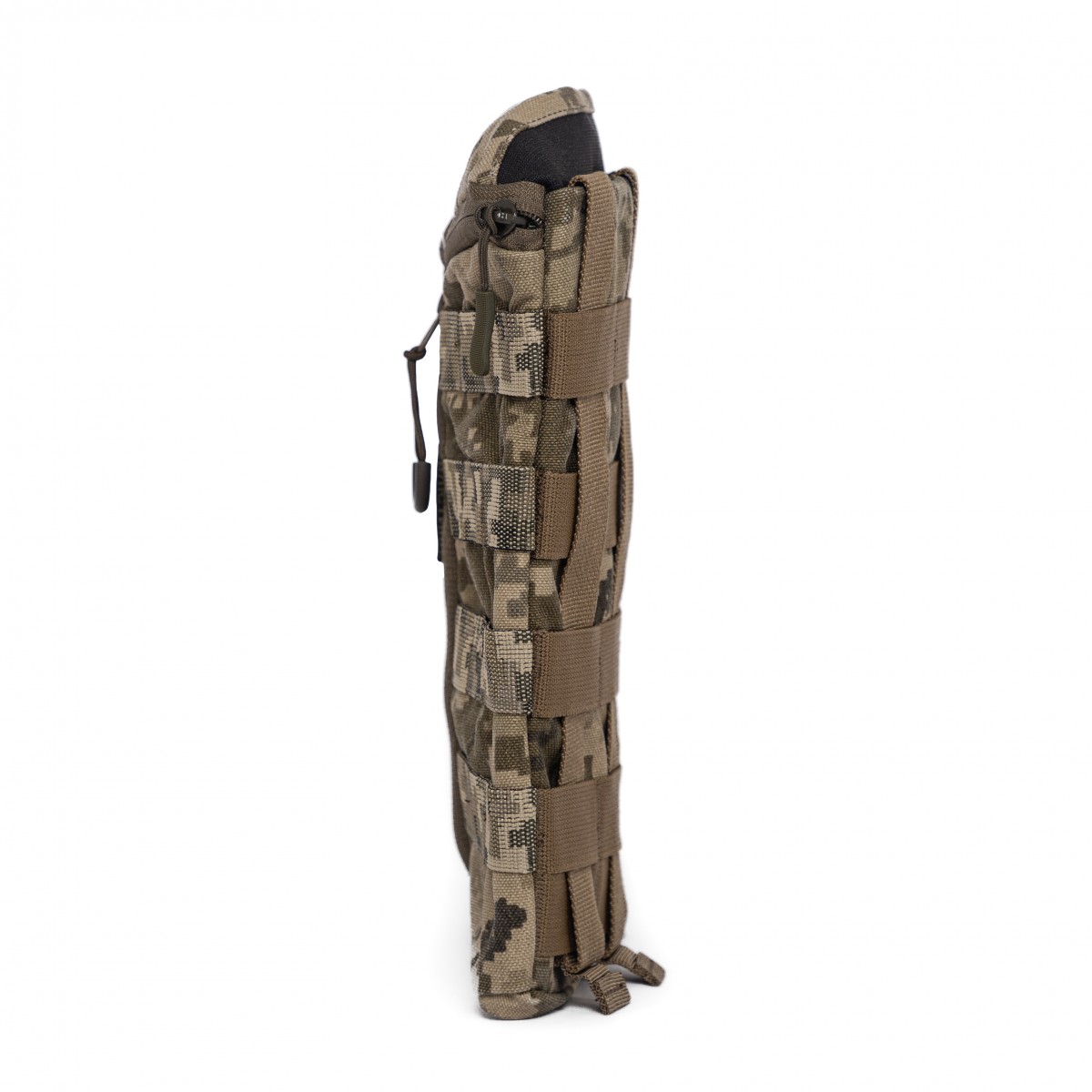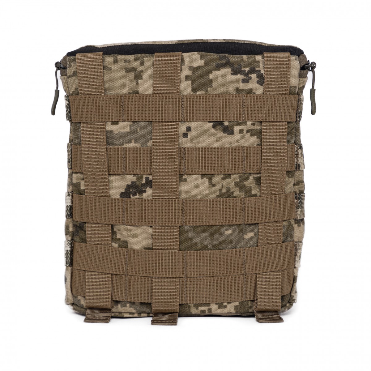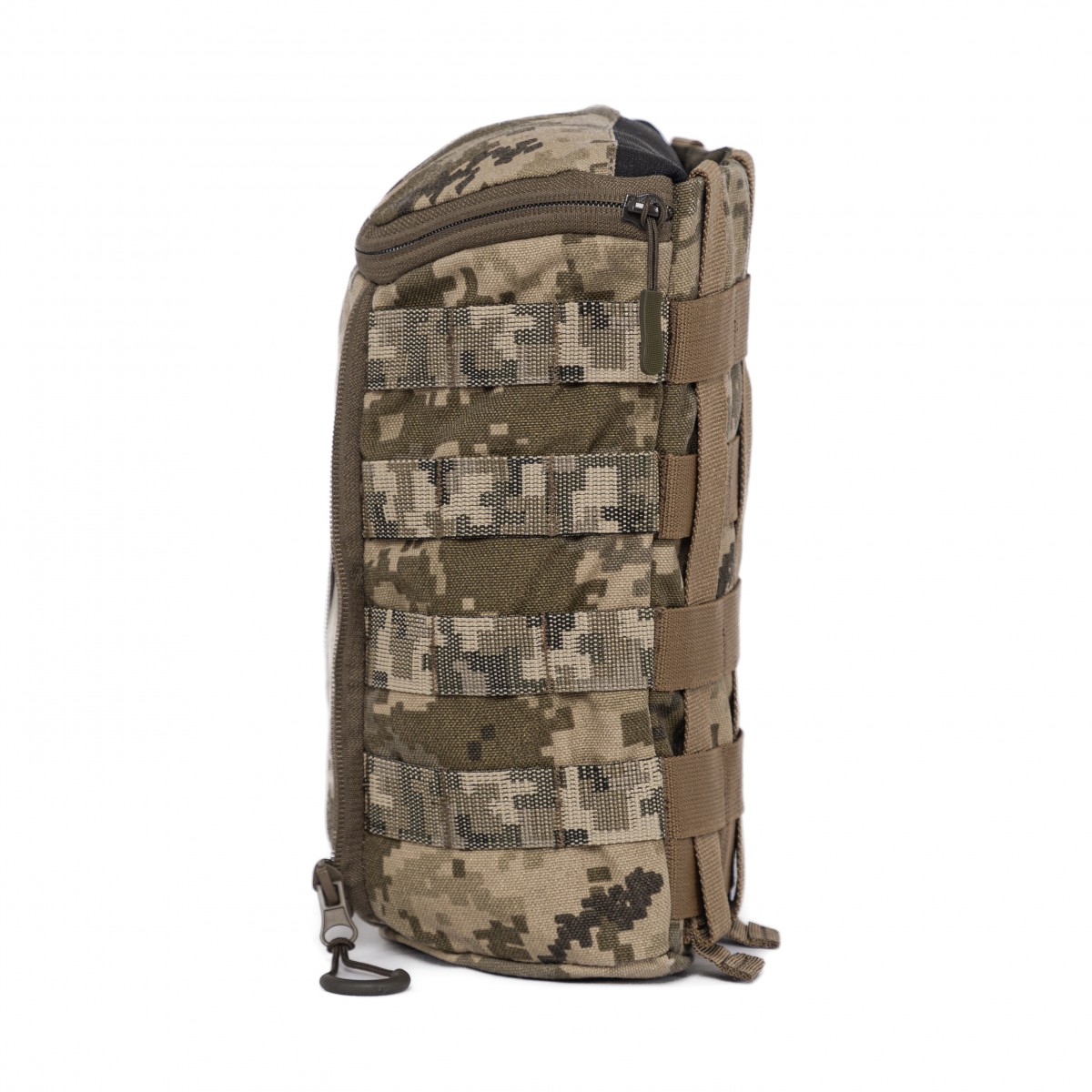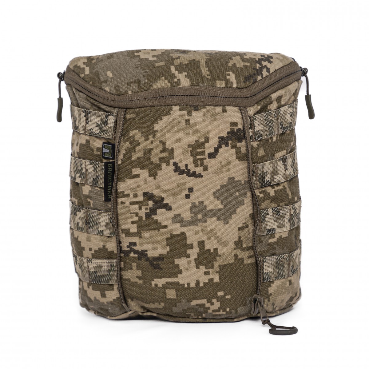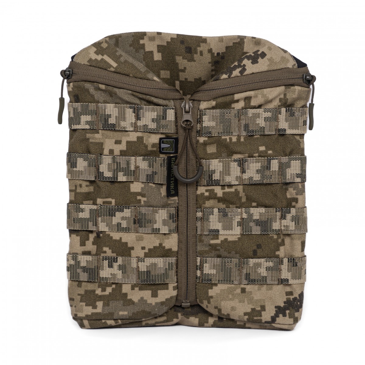 Сухарка, також відома як «Мародерка», – це універсальний підсумок, який може використовуватись під великий спектр завдань. Від перенесення в ньому патронів розсипом або в пачках до використання як підсумка під магазин-короб М249. Особливості товару Зручний та функціональний виріб можна адаптувати під потреби військовослужбовців завдяки таким перевагам: У заповненому вигляді підсумок має скошені бокові грані та кришку. Коли він порожній, грані можна звести докупи та застібнути на блискавку. У такому вигляді він буде пласким і не заважатиме зайвим об’ємом. До задньої частини кришки та жорсткої задньої стінки пришитий еластичний клапан «Нерозсипайка», який дозволяє наповнювати підсумок навіть без необхідності розстібати кришку. Завдяки своїм компактним розмірам у складеному вигляді виріб може бути розміщений на тильній частині плитоноски та використовуватись як невеликий рюкзак. При розміщенні гідратора підсумок може стати повноцінною частиною питної системи на спорядженні бійця. Сухарку «Компакт» можна також поєднувати з РПС, наприклад з «Черсел» від «Балістики», яку ви можете купити у нас на сайті. У сухарному підсумку вміститься великий спектр речей, що можуть знадобитися і в бою, і в полі, і в побуті, як-от додатковий БК, сітка для маскування, змінний одяг, сухпай. До спорядження підсумок кріпиться за допомогою системи MOLLE. Чарунки нашиті і на гранях сухарки, що дає можливість розмістити на ньому додаткове спорядження. Технічні характеристики Матеріал: Cordura 1000D. Стропа: нейлон. Розміри в складеному стані: 23×25×3 см. Розміри в розкладеному стані: 23×25×10 см. Вага: 310 г. Об’єм: 4,35 л.Основні характеристики Сухарка - нерозсипайка "Компакт" Балістика (ММ-14)