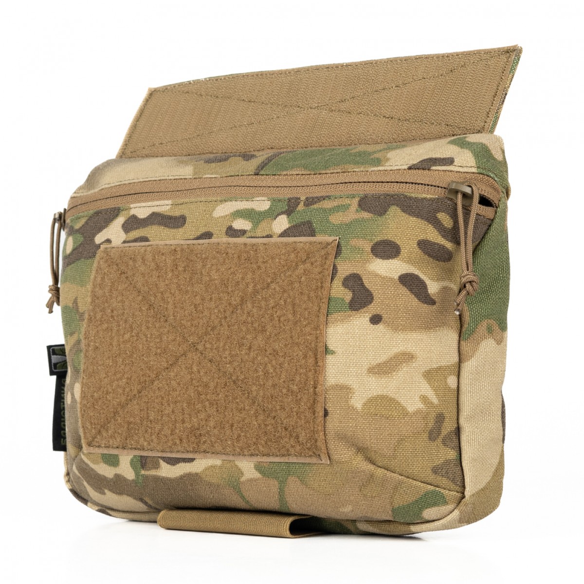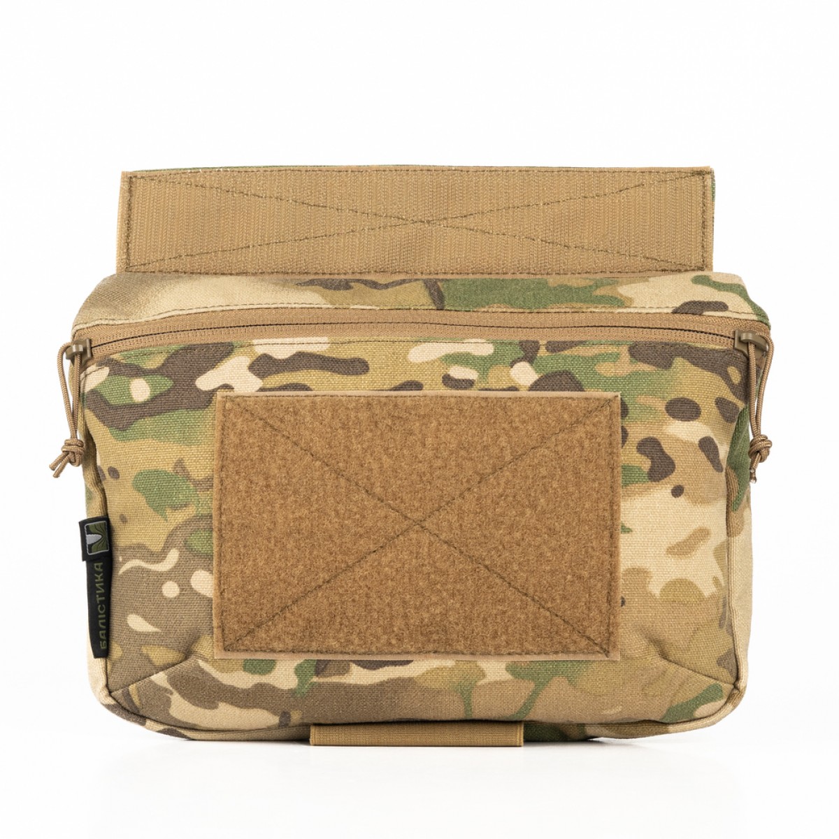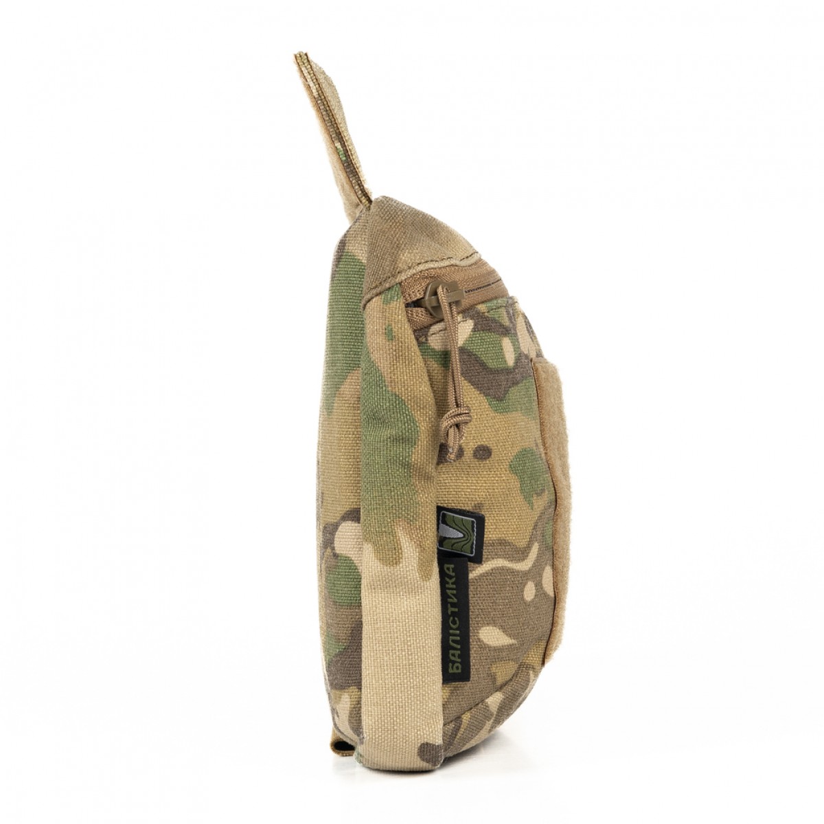 Це не просто сумка, а універсальний елемент, який можна використовувати разом із бронепакетом першого або другого класу захисту. В умовах «війни артилерій» така функція є надзвичайно важливою. «Ладник» кріпиться до плитоноски на передню або задню плиту і навіть із бронепакетом має достатньо простору для зберігання різних дрібниць. Особливості товару Завдяки своїй місткості та ергономічному дизайну сумка забезпечує зручний доступ до вмісту і водночас не обмежує у русі. Іншими характеристиками цього виробу є такі: Зверху до сумки прикріплена незнімна велкро-панель (22,5×5 см), яка вставляється у клапан плитоноски (сумісна з «Сарматом» та M3 Pro/Lite). Зверніть увагу, що на її лицьовій стороні розташовані гачки, а на тильній – петельки. Тому, якщо ваша плитоноска має інше розташування липучки, ви можете окремо придбати у нас велкро-перехідники. Виріб можна використовувати з-поміж іншого як аптечку завдяки доступу обома руками. На нижній частині міститься зовнішнє еластичне кріплення (шириною 8 см), спеціально призначене для турнікета. Основне відділення поділено на два відсіки невисокою перетинкою. Її бортик посилений смужкою пластику для надання стійкості та жорсткості. Внутрішні шви оброблені оздоблювальною стрічкою. Також тут вміщена внутрішня кишеня на блискавці, у яку і встановлюється балістичний пакет. Блискавка, якою застібається основне відділення, розташована на передній панелі сумки, на відстані 3 см від верхнього краю, що і забезпечує зручний доступ до вмісту. Два бігунки дають змогу розкривати «Ладник» на той чи той бік. На кишеню нашита еластична стрічка, розділена швами на відрізки, якими можна зафіксувати різні невеликі предмети – від додаткового турнікета або бандажа до батончиків та інших необхідних на полі бою припасів. На передній частині сумки вміщена велкро-панель з чарунками MOLLE (16×7 см). Технічні характеристики Зовнішній матеріал: Cordura 1000D. Внутрішній матеріал: Oxford 600D. Липучка: Velcro. Фурнітура: YKK. Стропа: поліамід. Розміри: 25×17×3 см. Вага: 155 г.Основні характеристики Напашник "Ладник" із суцільною велкро-панеллю (Мультикам неоригінальний)