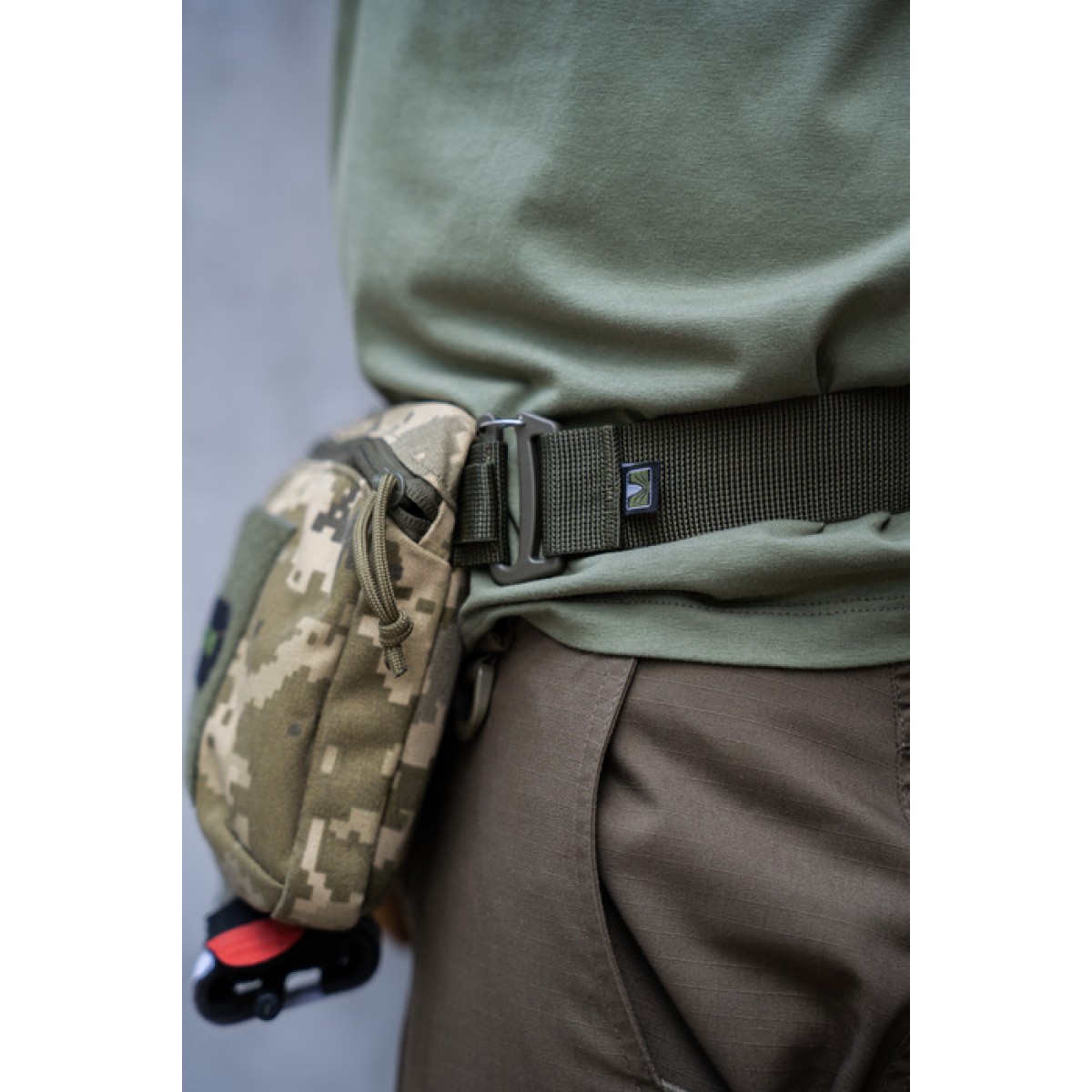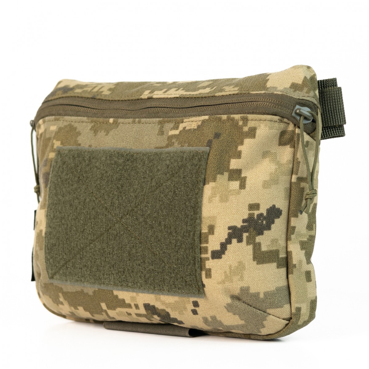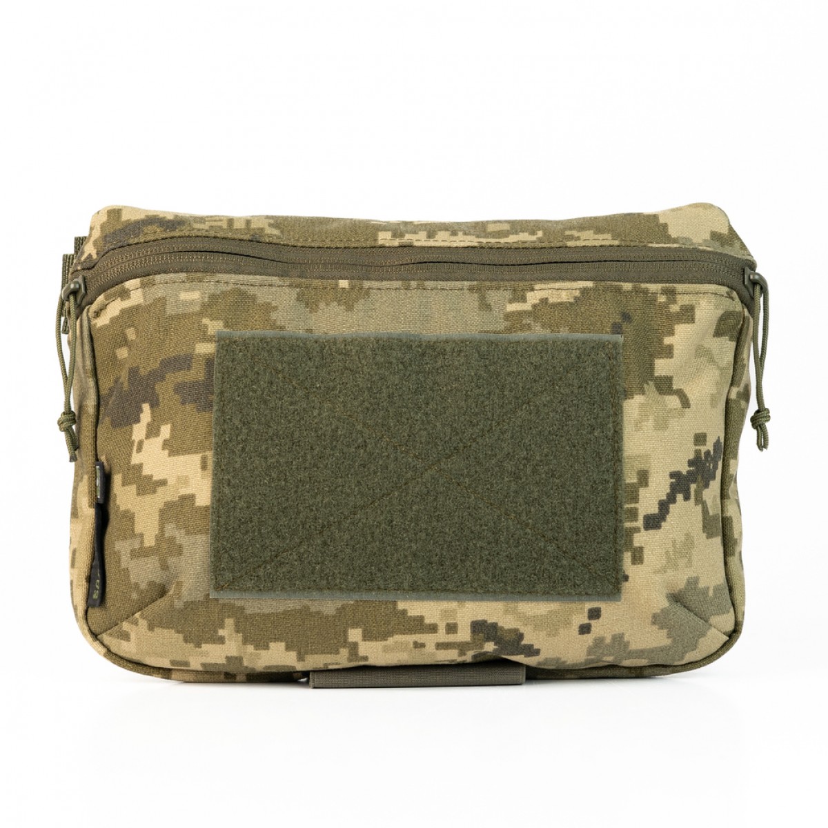 «Ладник» поєднує в собі кілька способів застосування. Він може бути напашною сумкою, яка кріпиться до плитоноски або бронежилета. При встановленні бронепакета він стає ще й повноцінним абдомінальним протиуламковим модулем захисту. А якщо до нього придбати ремінець шириною 2,5 або 4 см, то цілком можна використовувати в повсякденному житті як бананку або сумку через плече. Особливості товару Метою конструкторів компанії «Балістика» було створити сумку з можливістю встановити бронепакет першого чи другого класу захисту, який водночас не заважатиме використовувати її за прямим призначенням. В умовах «війни артилерій» це надважливо. Крім того, незамінним цей виріб роблять такі характеристики: Комплектується двома знімними велкро-кріпленнями. Частина з липучкою має довжину 10 см і вставляється у клапан плитоноски. До підсумка кріплення чіпляються на карабіни, для яких на ньому ззаду нашиті горизонтальні петлі. Дві подвійні вертикальні петлі на боках сумки призначені для ремінця (шириною 2,5 чи 4 см), який дає змогу носити її як бананку. Ремінь у комплекті не йде. Можна використовувати як медичний підсумок завдяки доступу до нього обома руками. Зовнішнє еластичне кріплення (шириною 8 см) на нижній частині дає змогу переносити турнікет. Основне відділення розділено на два відсіки невисокою перегородкою. Облямівка, якою вона обшита згори, всередині має смужку пластику для надання їй стійкості. Внутрішні шви посилені оздоблювальною стрічкою. Також тут вміщена внутрішня кишеня на блискавці, у яку і вставляється бронепакет. Блискавка, якою замикається основне відділення, розташована на передній панелі підсумка, на відстані 2+ см від верхнього краю, що і забезпечує зручний доступ до вмісту. Два бігунки дозволяють розкривати підсумок на один чи другий бік. На кишені нашита еластична стрічка, поділена швами на відтинки, у які можна повстромлювати різні невеликі речі – від додаткового турнікета або бандажа до батончиків та інших необхідних на полі бою припасів. На передній частині сумки вміщена велкро-панель з чарунками MOLLE (16×7 см). Технічні характеристики Зовнішній матеріал: Cordura 1000D. Внутрішній матеріал: Oxford 600D. Липучка: Velcro. Фурнітура: Woojin. Стропа: поліамід. Розміри: 25×17×3 см. Вага: 167 г.Основні характеристики Сумка-напашник бананка "Ладник" (ММ-14)