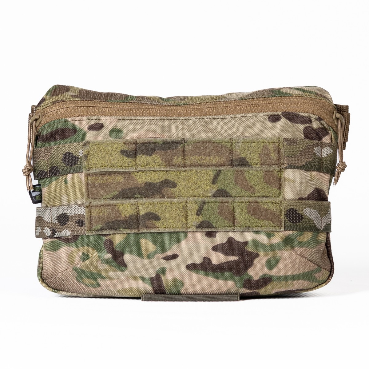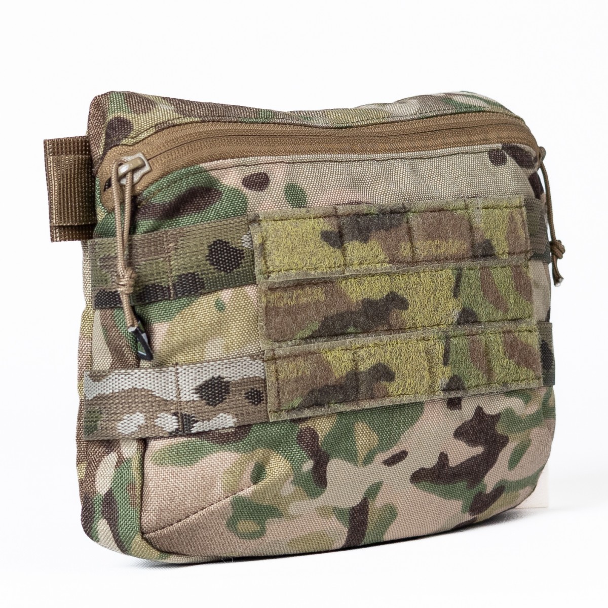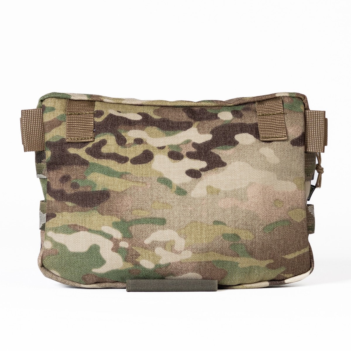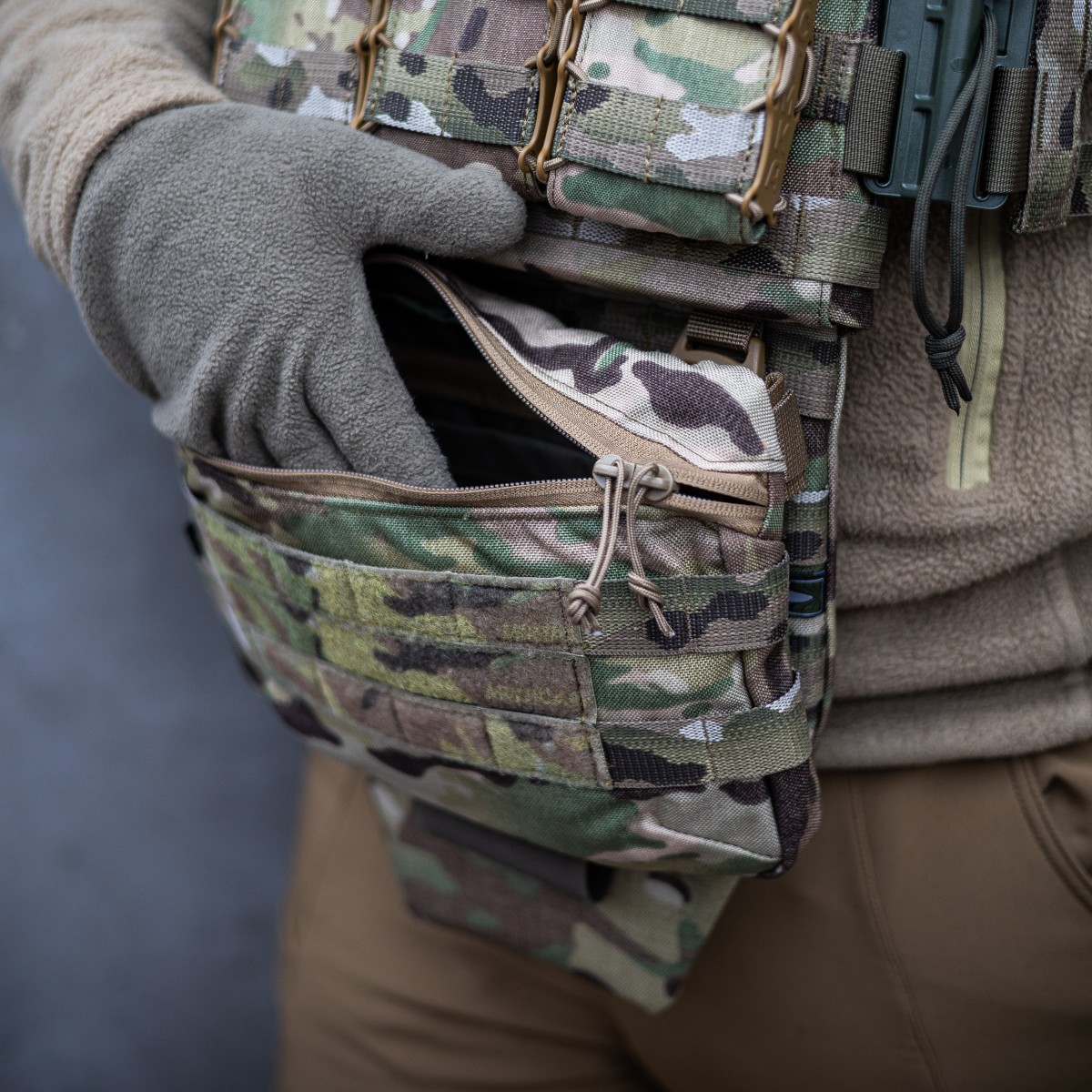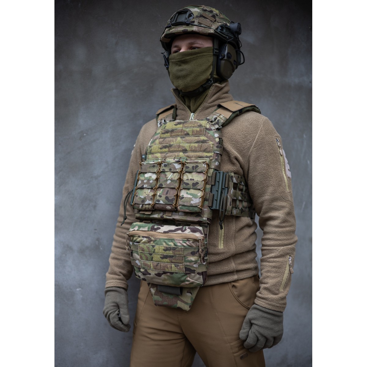 «Ладник» поєднує в собі кілька способів застосування. Він може бути напашною сумкою, яка кріпиться до плитоноски або бронежилета. При встановленні бронепакета він стає ще й повноцінним абдомінальним протиуламковим модулем захисту. А якщо до нього придбати ремінець шириною 2,5 або 4 см, то цілком можна використовувати в повсякденному житті як бананку або сумку через плече. Особливості товару Метою конструкторів компанії «Балістика» було створити сумку з можливістю встановити бронепакет першого чи другого класу захисту, який водночас не заважатиме використовувати її за прямим призначенням. В умовах «війни артилерій» це надважливо. Крім того, незамінним цей виріб роблять такі характеристики: Комплектується двома знімними велкро-кріпленнями. Частина з липучкою має довжину 10 см і вставляється у клапан плитоноски. До підсумка кріплення чіпляються на карабіни, для яких на ньому ззаду нашиті горизонтальні петлі. Дві подвійні вертикальні петлі на боках сумки призначені для ремінця (шириною 2,5 чи 4 см), який дає змогу носити її як бананку. Ремінь у комплекті не йде. Можна використовувати як медичний підсумок завдяки доступу до нього обома руками. Зовнішнє еластичне кріплення (шириною 8 см) на нижній частині дає змогу переносити турнікет. Основне відділення розділено на два відсіки невисокою перегородкою. Облямівка, якою вона обшита згори, всередині має смужку пластику для надання їй стійкості. Внутрішні шви посилені оздоблювальною стрічкою. Також тут вміщена внутрішня кишеня на блискавці, у яку і вставляється бронепакет. Блискавка, якою замикається основне відділення, розташована на передній панелі підсумка, на відстані 2+ см від верхнього краю, що і забезпечує зручний доступ до вмісту. Два бігунки дозволяють розкривати підсумок на один чи другий бік. На кишені нашита еластична стрічка, поділена швами на відтинки, у які можна повстромлювати різні невеликі речі – від додаткового турнікета або бандажа до батончиків та інших необхідних на полі бою припасів. На передній частині сумки вміщена велкро-панель з чарунками MOLLE (16×7 см). Технічні характеристики Зовнішній матеріал: Cordura 1000D. Внутрішній матеріал: Oxford 600D. Липучка: Velcro. Фурнітура: Woojin. Стропа: поліамід. Розміри: 25×17×3 см. Вага: 167 г.Основні характеристики Сумка-напашник бананка "Ладник" (Мультикам)