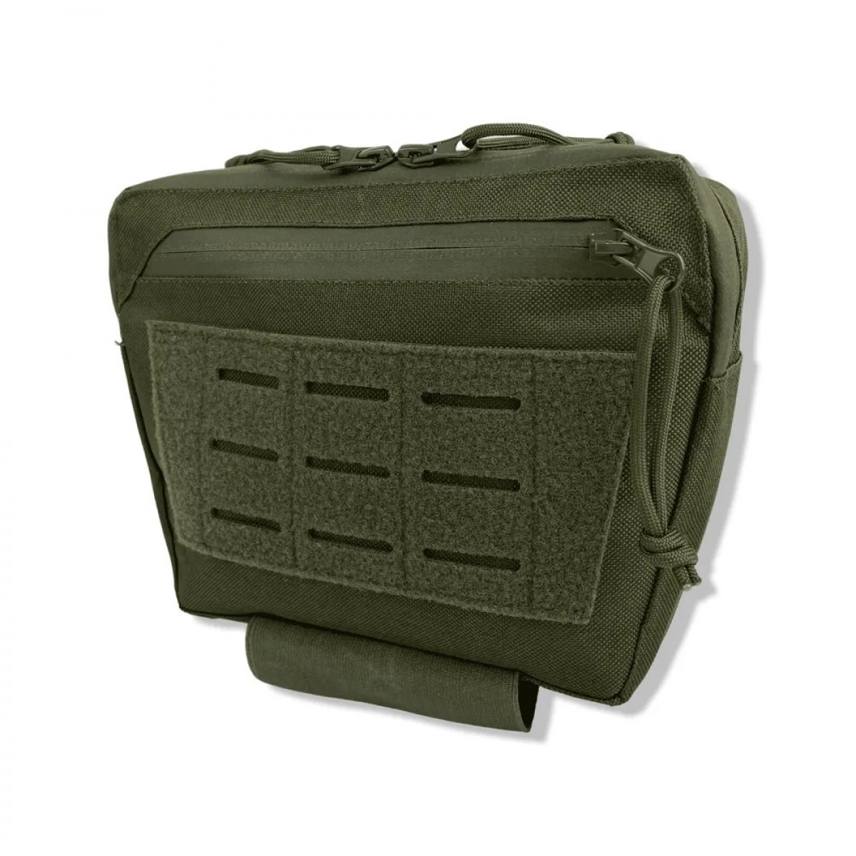 Сумка має дві великі велкро-панелі. Фронтальна велкро-панель оснащена інтерфейсом MOLLE Laser Cut, що дозволяє прикріплювати до сумки додаткове спорядження, таке як підсумки або інші аксесуари. Це розширює функціональність сумки і дозволяє вам персоналізувати її під свої потреби та завдання.