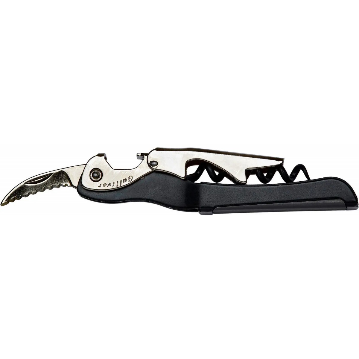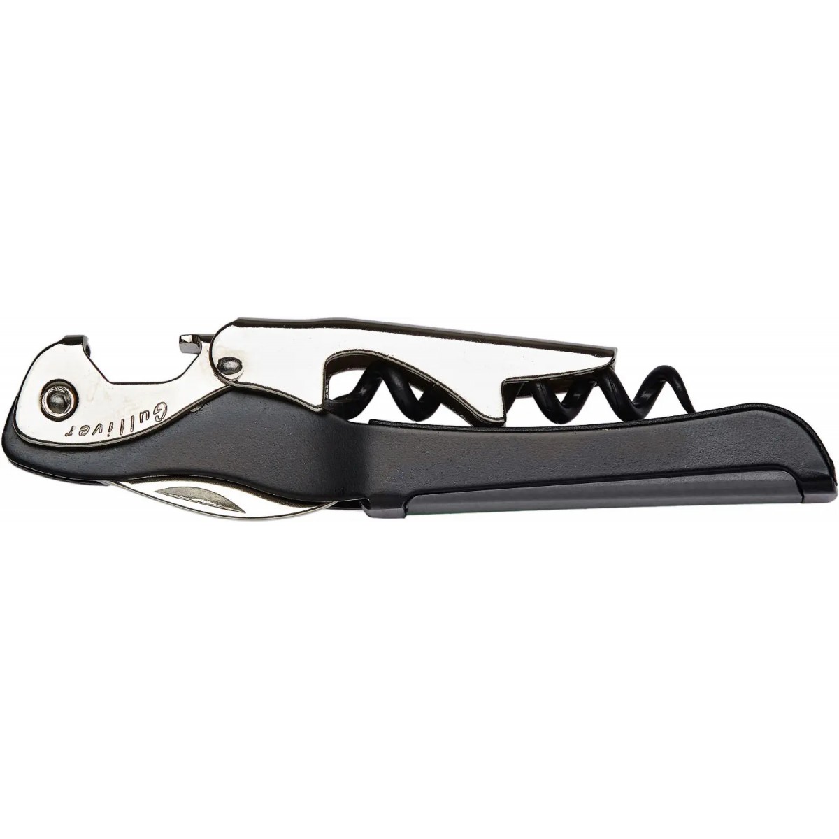 Багатофункціональний штопор Gulliver виробництва компанії Due Cigni - це елегантно виконаний і незамінний інструмент для швидкого, безпечного і комфортного відкриття пляшок, запечатаних за допомогою дерев’яних пробок. Крім безпосередньо спіралі, штопор має малий розкладний ніж і двохсегментну відкривачку. Профіль штопора в складеному стані нагадує своєю формою профіль хижого птаха.