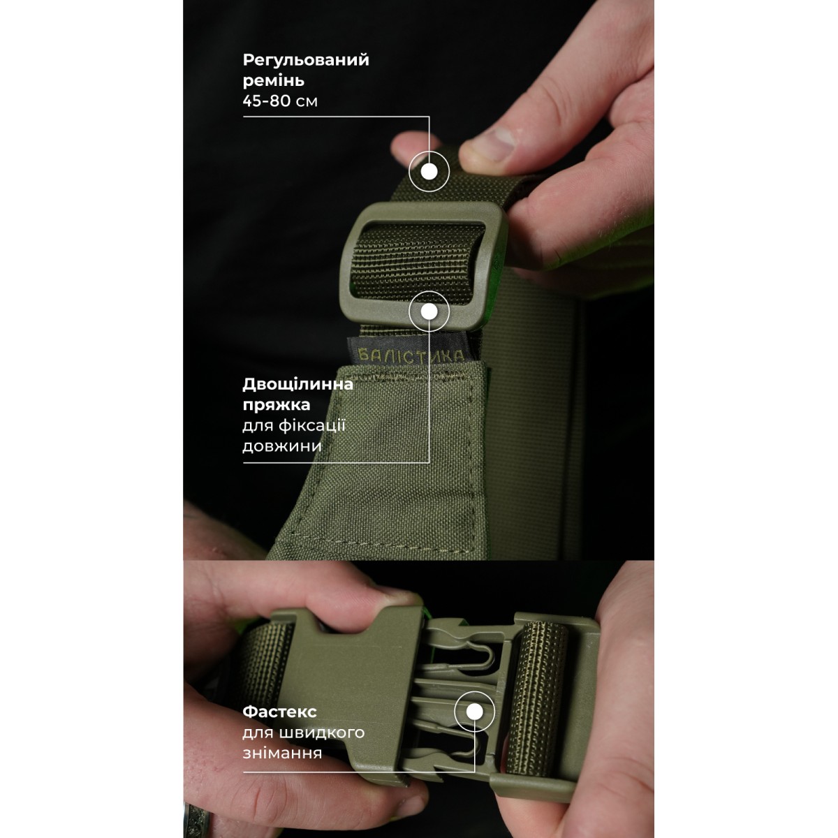 Компактна сумка для щоденного використання ✅ Ключові переваги 3 окремі відділення Обʼєм 2,9 л – вмістить документи, ключі, телефон, гаманець Регульований ремінь із фастексом Ергономічна обтічна форма Велкро-панель 12×5 см на фасаді Міцні матеріали: нейлон 500D (аналог Cordura 500D), Oxford 340D, фурнітура YKK та 2M Опис товару Сумка-бананка «Саква» створена для щоденного використання в місті, активного відпочинку, походів. Вона легка, міцна й компактна і стане у пригоді, якщо ви не любите носити з собою багато речей. Переднє відділення (24×10,5 см) з карабіном на еластичній спіралі підходить для ключів, перепустки, жетона Основне, найбільше відділення (32×16×6,5 см) оснащене двома внутрішніми кишенями (21×10 і 9×10 см), у які можна закинути кілька батончиків та упаковку джерок Плоске заднє відділення (32×11 см) призначене для карток, готівки або монет ✔️ Завдяки напівкруглій формі, звуженій донизу, та ременю, пришитому під кутом, бананка щільно сидить на талії і не заважає рухам ✔️ Двощілинна пряжка дозволяє регулювати довжину ременя, а фастекс – миттєво знімати або фіксувати бананку на поясі ✔️ Паракордові тримачі на бігунках легко відкривати навіть у рукавичках ✔️ Чарунки моллі під велкро-панеллю виконують роль радше мілітарі-атрибута ❓ Часті запитання Чи поміститься великий смартфон? Так. Смартфон із діагоналлю до 6,7" у масивному чохлі легко поміститься в основному та задньому відділенні. У найменше переднє його краще не намагатись втиснути. Воно розраховане на дрібніші речі: ключі, картки, кейс із навушниками, складний ніж або ліхтарик. Чи зручно носити бананку через плече? Так. Ремінь пришитий під невеликим кутом, тому сумка щільно прилягає до тіла як на поясі, так і в положенні через плече. Чи можна щось чіпляти на моллі? Так, але чарунки радше декоративні. Вони витримають легкий інвентар – карабін з рукавичками, брелок, але не призначені для чогось громіздкого. Чи не заважає бананка під час бігу або на тренуваннях? Ні. Завдяки ергономічній формі та регульованому ременю сумка добре сидить й не сковує рухів. Чи можна прати? Так, але обережно. Рекомендується ручне прання або очищення щіткою з водою та безфосфатним порошком.Відгуки про Сумка-бананка "Саква" (Розмір М | Олива) ТМ Балістика