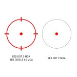 - Прицільна сітка: точка 2 МОА; точка 2 МОА у колі 65 МОА
