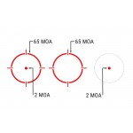 Система Holosun MRS (Multi-Reticle System) пропонує користувачеві гнучкість у використанні прицілу, даючи змогу швидко вмикати або вимикати будь-яку сітку і застосовувати саме ту, яка потрібна для роботи: точка 2 MOA, коло 65 MOA, точка + коло.