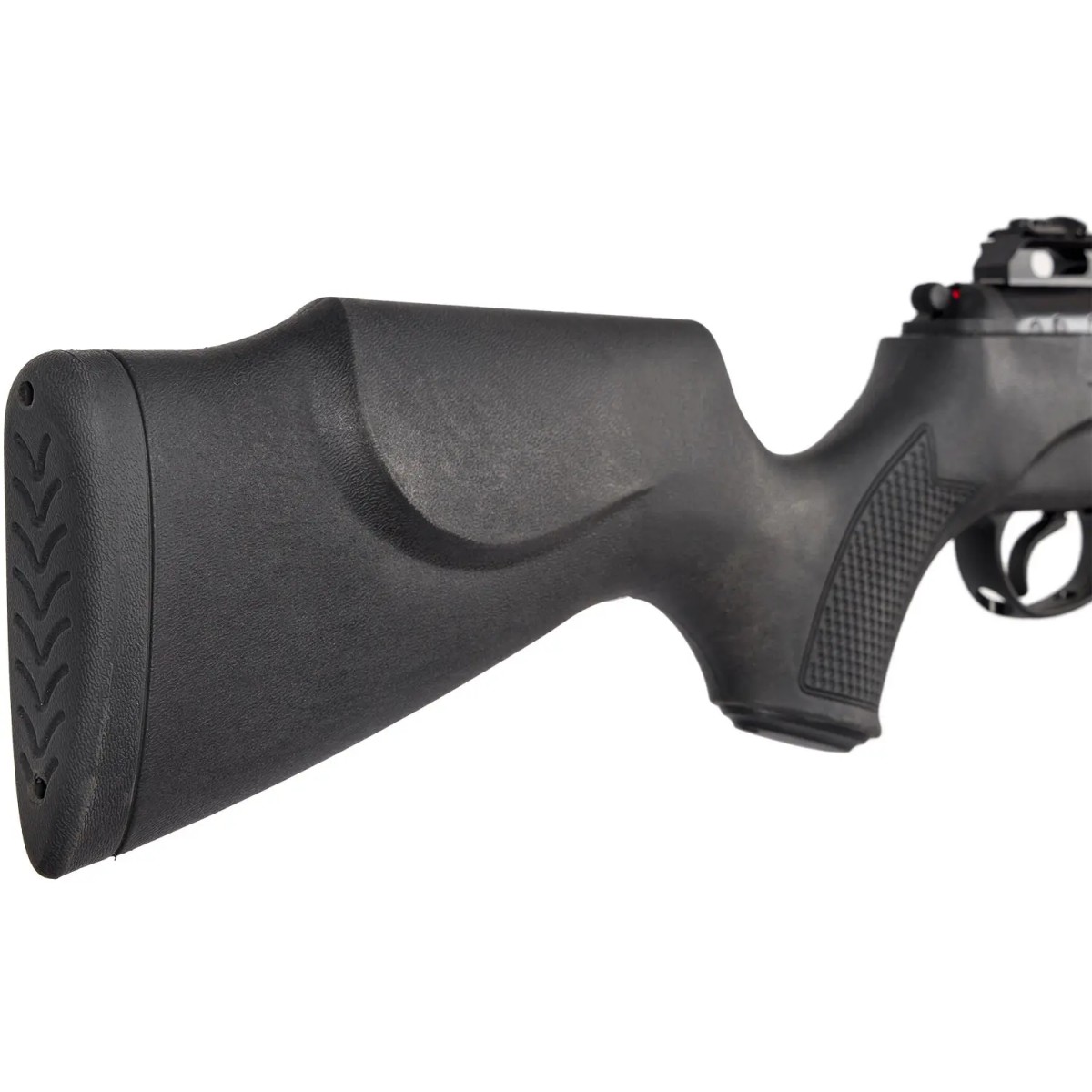 Завдяки використанню ударостійкого пластику в конструкції ложі та приклада, ложа не боїться різких перепадів температур, підвищеної вологості й менш піддається сколам та тріщинам, ніж дерев’яні ложі. Ложа обладнана спеціалізованою системою Shock Absorber System - SAS™ – системою поглинання удару та вібрації, розробленою і запатентованою компанією Hatsan. Завдяки системі SAS™ більшість ударів і вібрацій, які з’являються під час пострілу, поглинається, тим самим поліпшується точність пострілу. Модель оснащена гумовим потиличником, який призначений для пом’якшення удару в момент пострілу (віддачі) і підвищення стійкості зброї при прицілюванні.